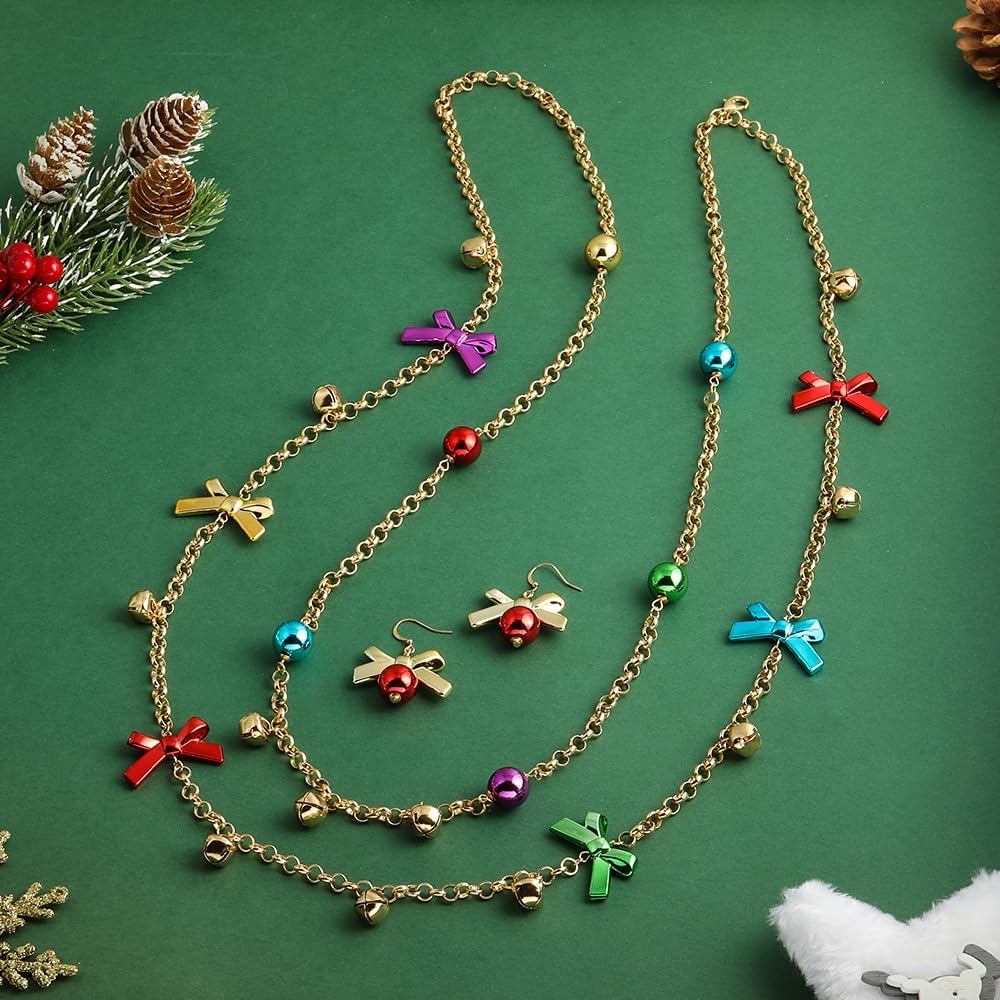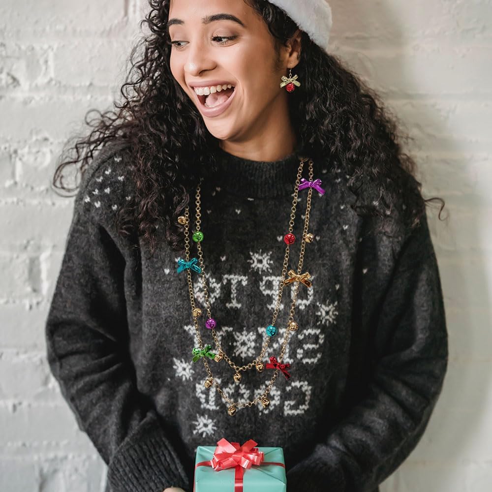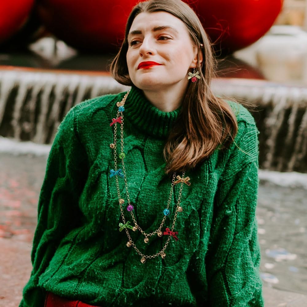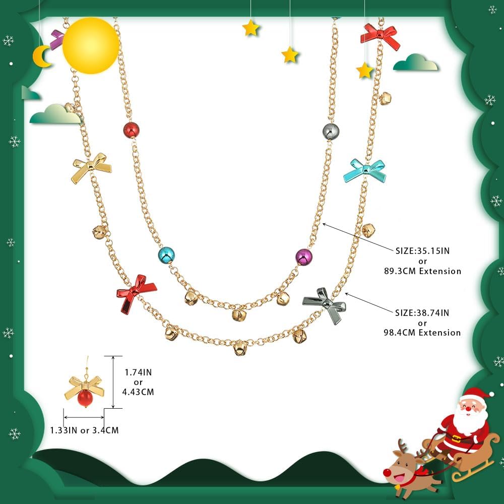 Madison Tyler Christmas Layered Necklace Set for Women | Statement Jingle Bells Jewelry | Dangle Bells Bow Earrings | Xmas Holiday Necklaces Gifts for Girls
