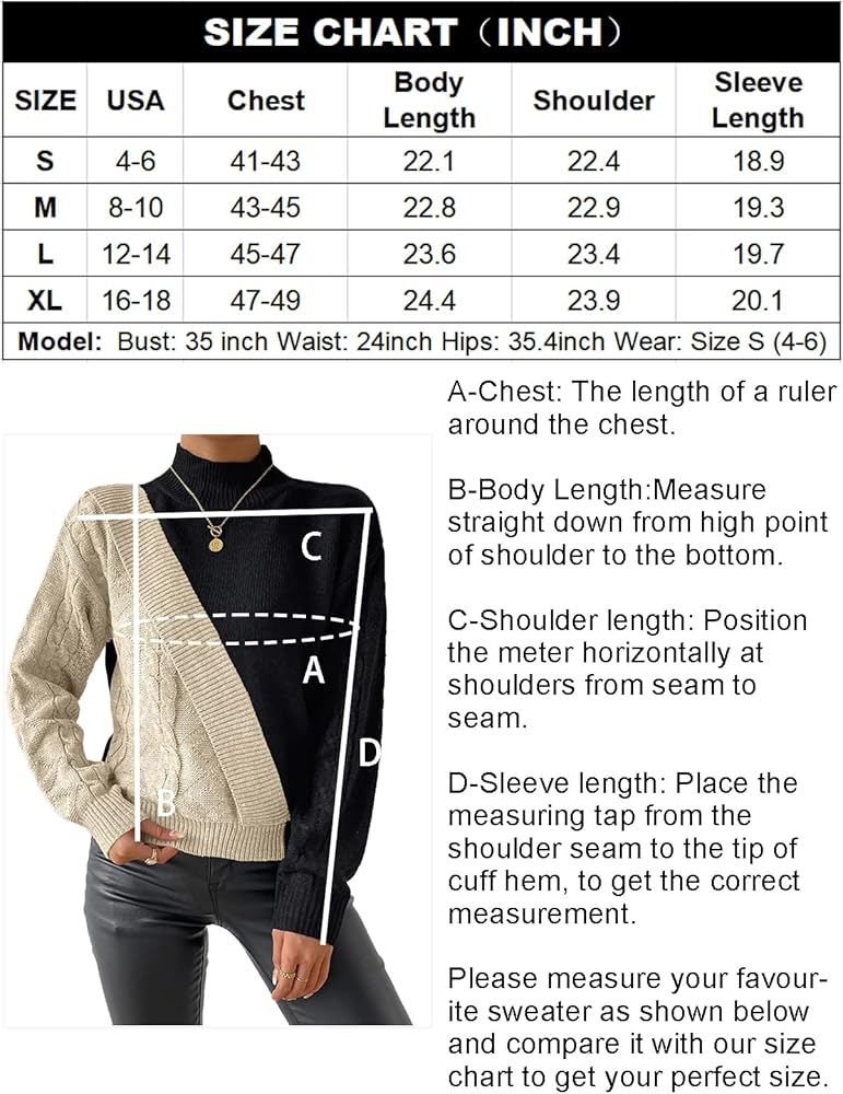 🍁MATERIAL: Acrylic.This sweater is made of chunky knit, which makes it very warm to wear. The fabric of this sweater is very soft and elastic.