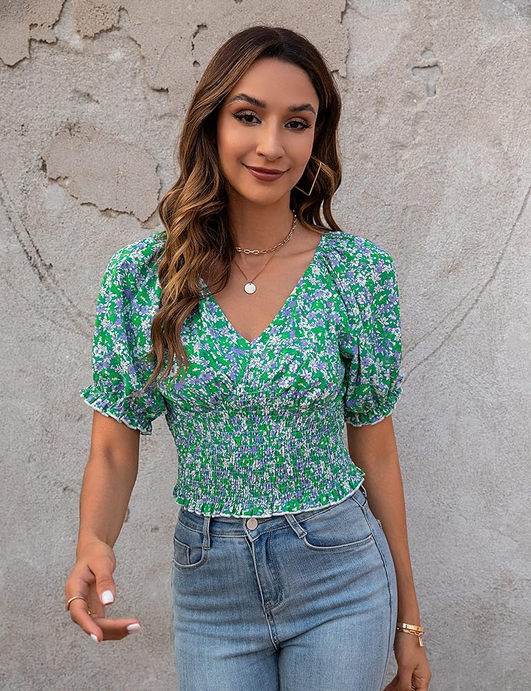 Features:The V-neck design of these crop tops is both stylish and comfortable, making them perfect for summer outfits-a must-have addition to your wardrobe! Choose from our range of puff sleeve styles for a cute and comfortable look.