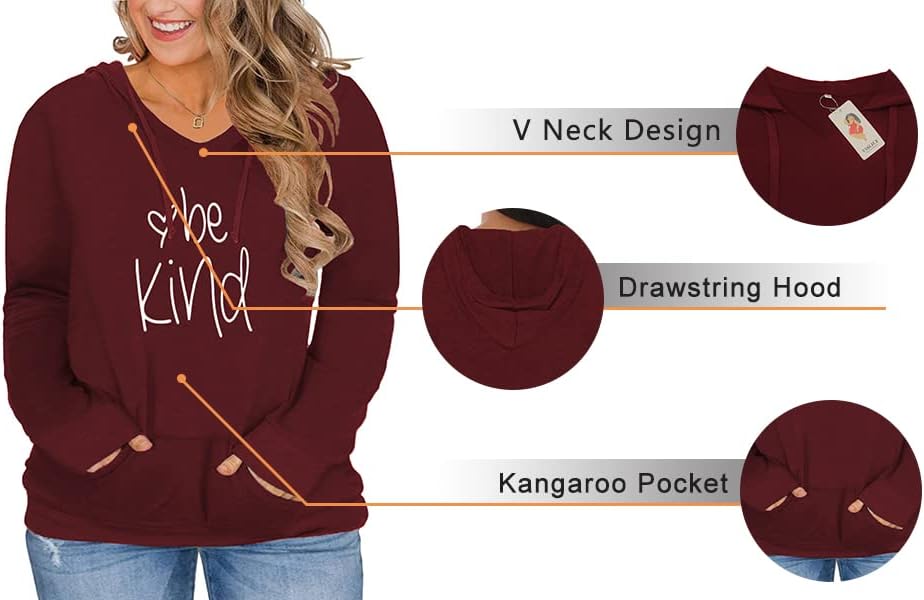 - Plus size hoodies for women feature v neck, long sleeve, hood