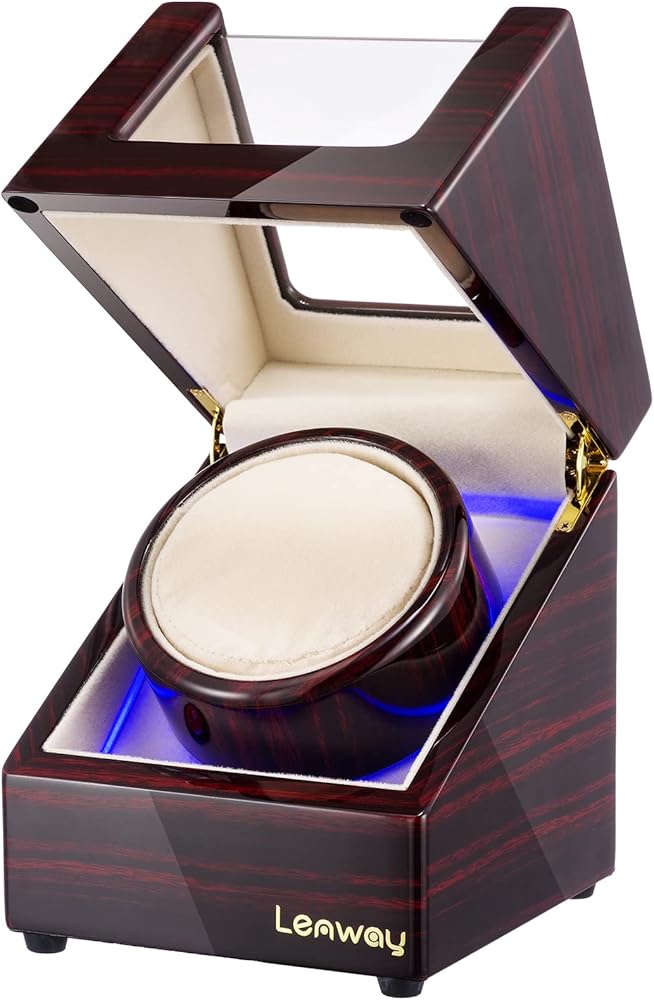 [SUPER QUIET,AS LOW AS 5DB,LED ATMOSPHERE LIGHT] Watch Winder With Mabuchi Motor,In Combination With A Gearbox Inside The Watch Winder,Extremely Quiet And Long Lasting,As Low As 5db,The Level Of Noise Is Fully Negligible.Which Does't Affect Sleep,You Can Put Automatic Watch Winder On Anywhere And Use It Anytime,Watch Winder With Led Light,You Can Enjoy Displaying Your Watch In The Bedroom For Example Without Representing A Distraction Factor And Fall Asleep At Ease At Night.