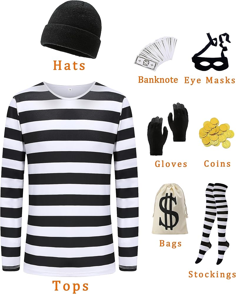 Versatile Occasions: From costume parties to Halloween festivities, this outfit is perfect for a range of events. Unleash your inner criminal and add a touch of excitement to any gathering.
