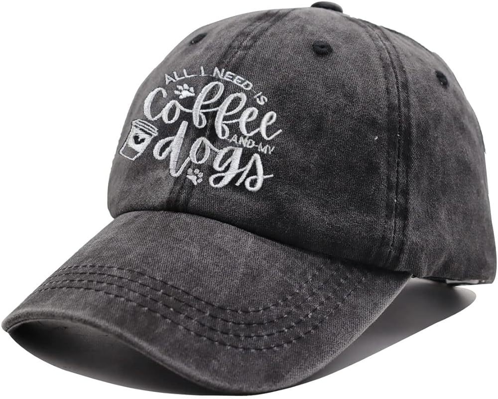 Adjustable and Perfect Size : All I Need Is Coffee and My Dogs Hat Circumference : 21.65-23.22inches(55-59cm); Hat Brim: 2.75inches(7cm); Hat Height: 3.54inches(9cm). One Size Fits Most, Adjustable Metal Closure Provides A Flexible Fit.