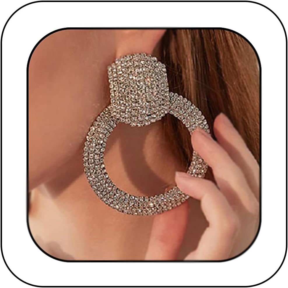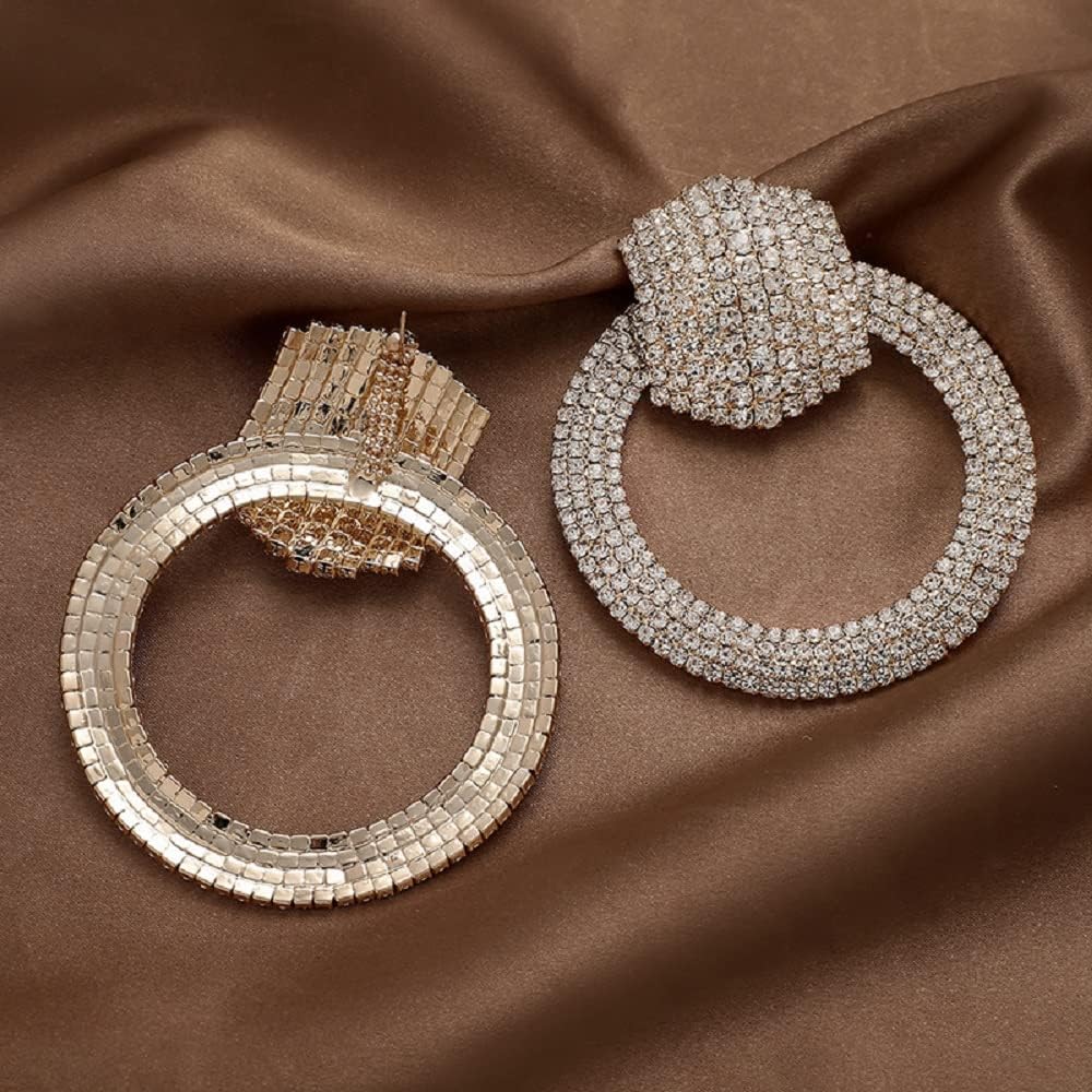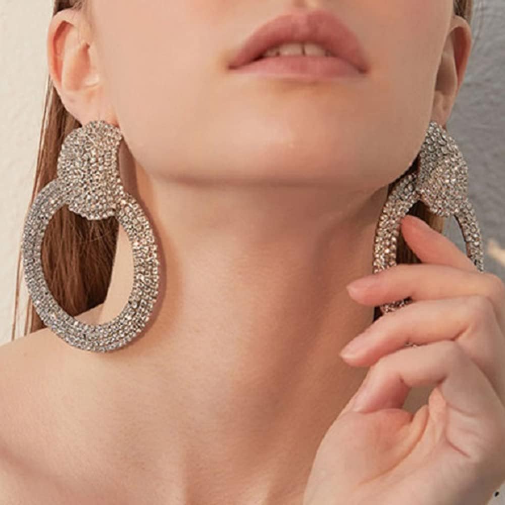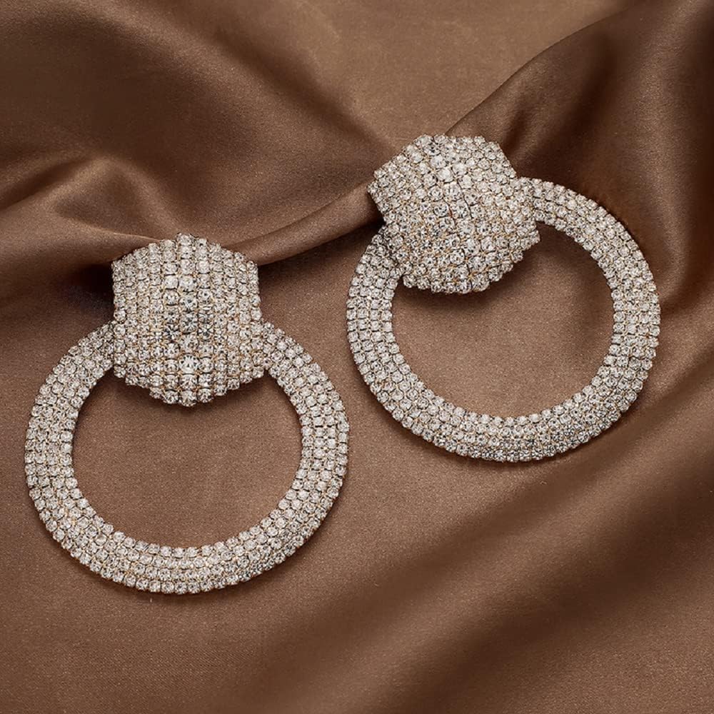 Rhinestone Large Hoop Earrings Elegant Statement Stud Earrings for Women Fashion Geometric Circle Earrings for Women