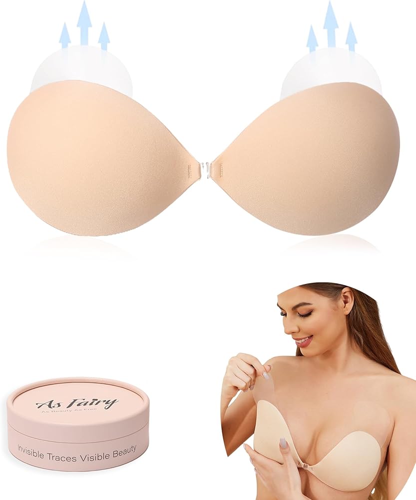 Frong clasp closure design make your breasts look more full, more cleavage. Free gift transparent Breast lift sticker push up your breast with just a pull.