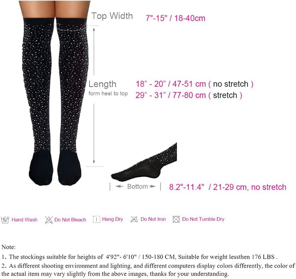 Rhinestone knee high socks,breathable, absorb sweat,easy matching for most of your daily wearing. Make you look charming and attract more people's attention.