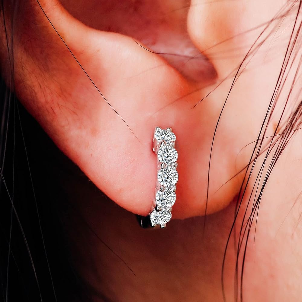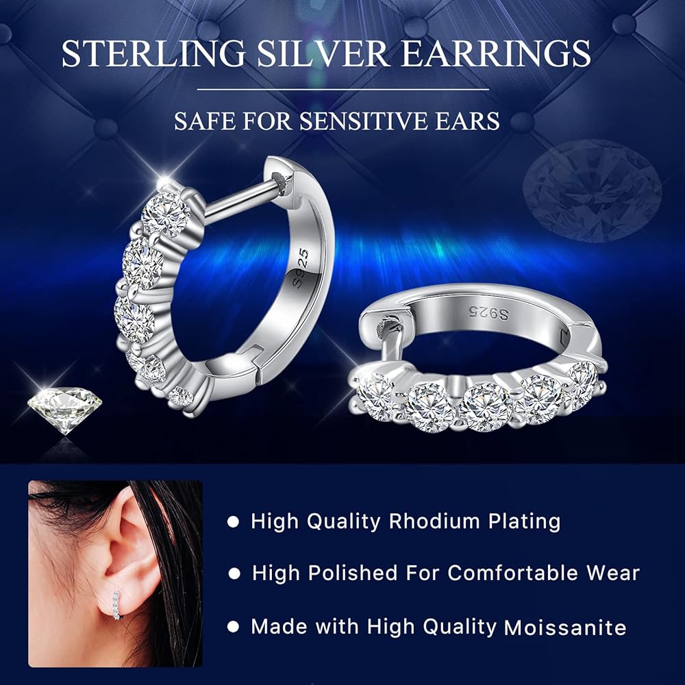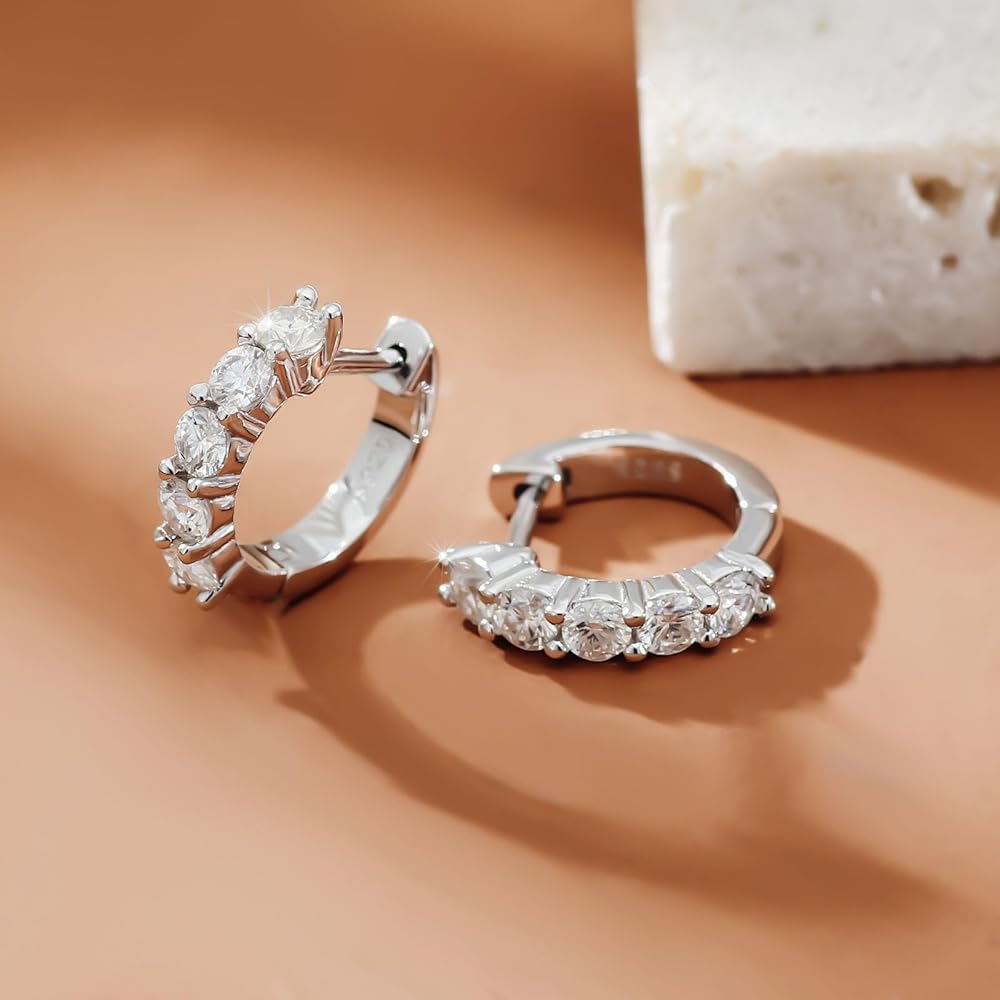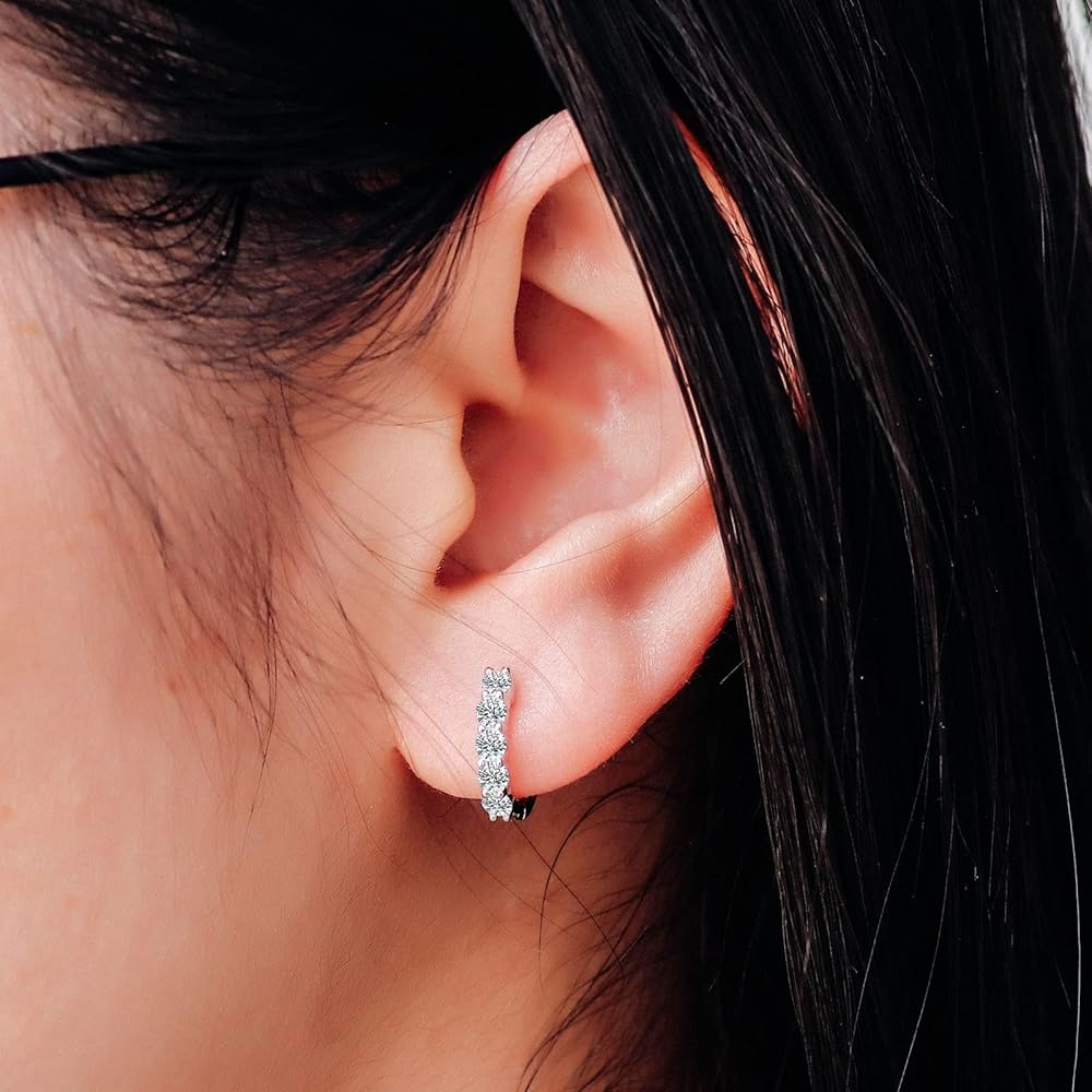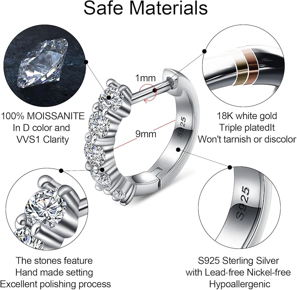Quality Gemstones-100% Real Moissanite: Compared with Cubic Zirconia or natural diamond,which is as hard and shinny as natural diamond;It won't tarnish or discolor and it is more cost-effective than diamond. the delicate hoop earrings for women/men Sparkle brighter than diamonds with our-the perfect timeless accessory for any outfit!