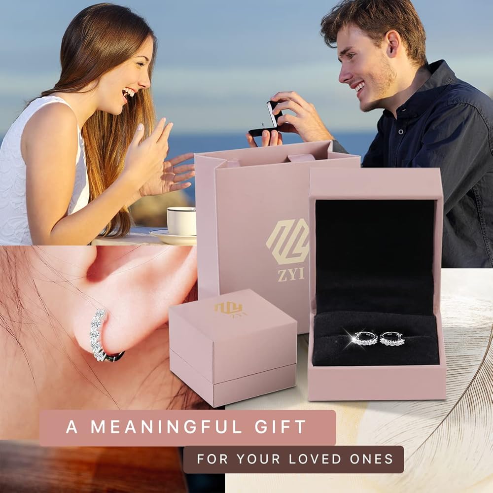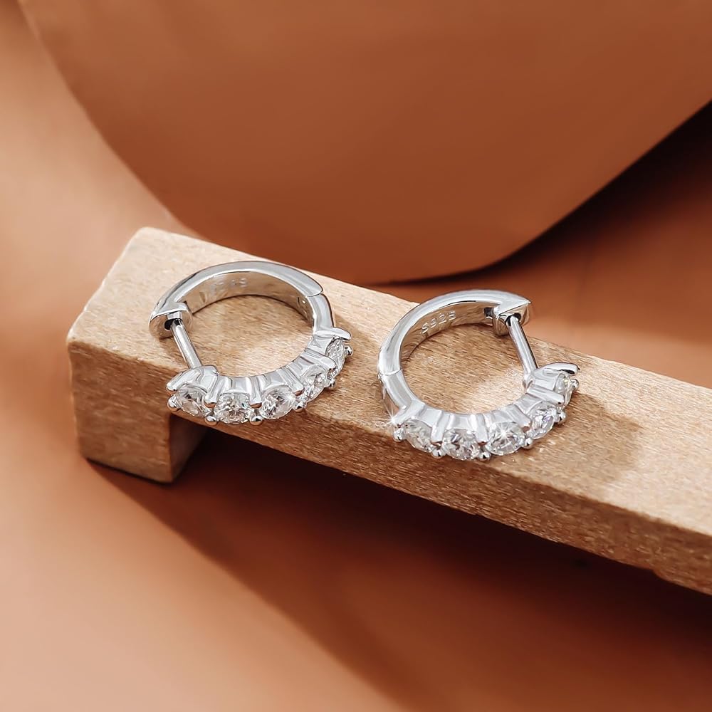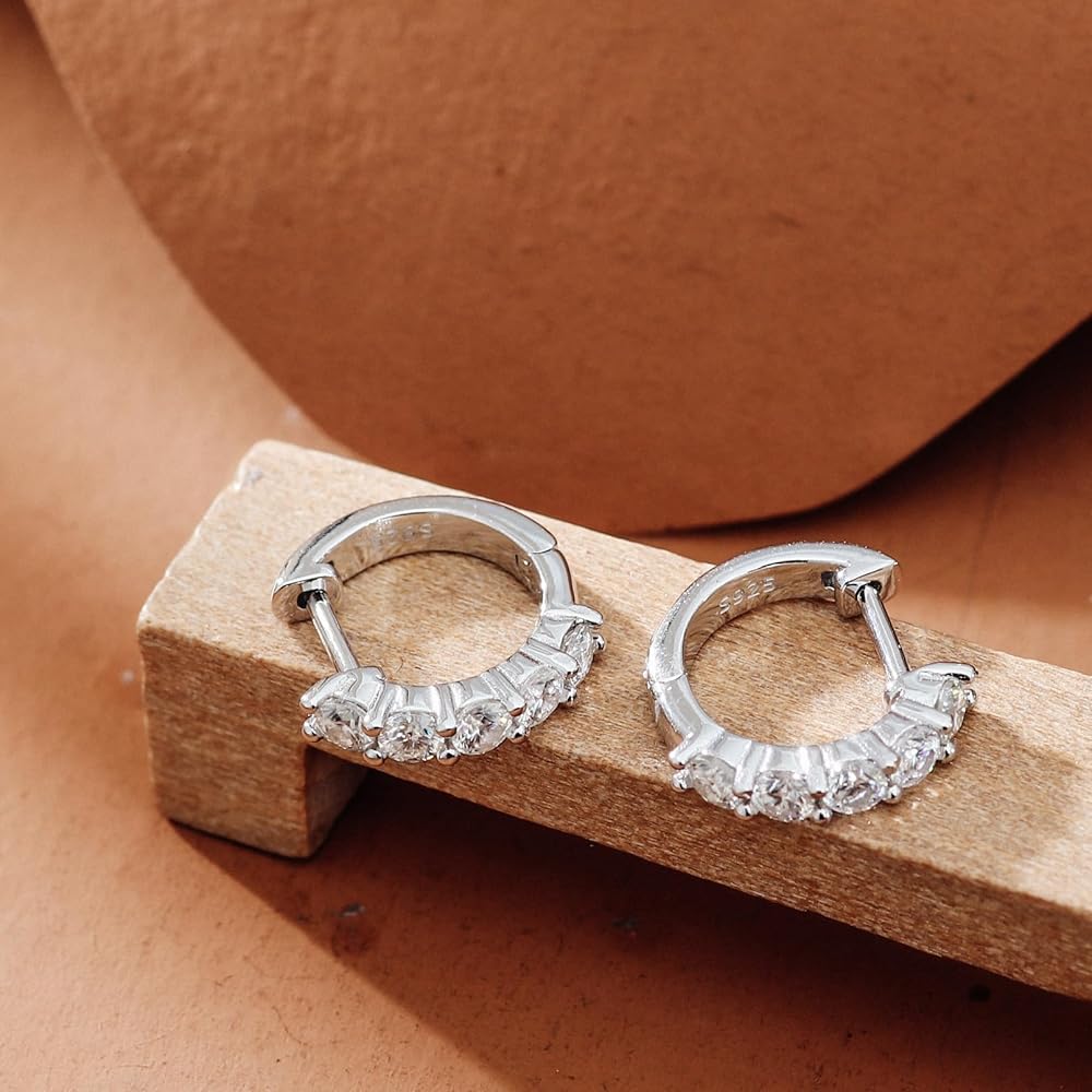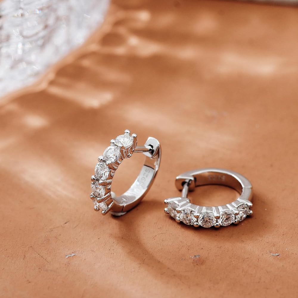 Quality Gemstones-100% Real Moissanite: Compared with Cubic Zirconia or natural diamond,which is as hard and shinny as natural diamond;It won't tarnish or discolor and it is more cost-effective than diamond. the delicate hoop earrings for women/men Sparkle brighter than diamonds with our-the perfect timeless accessory for any outfit!