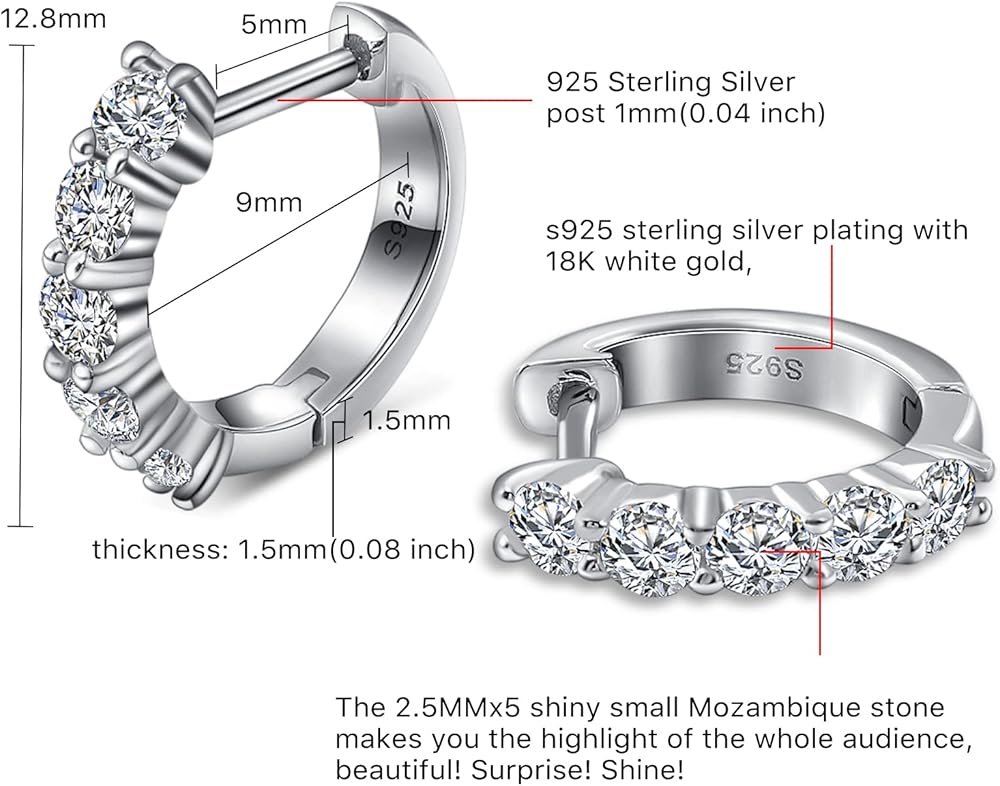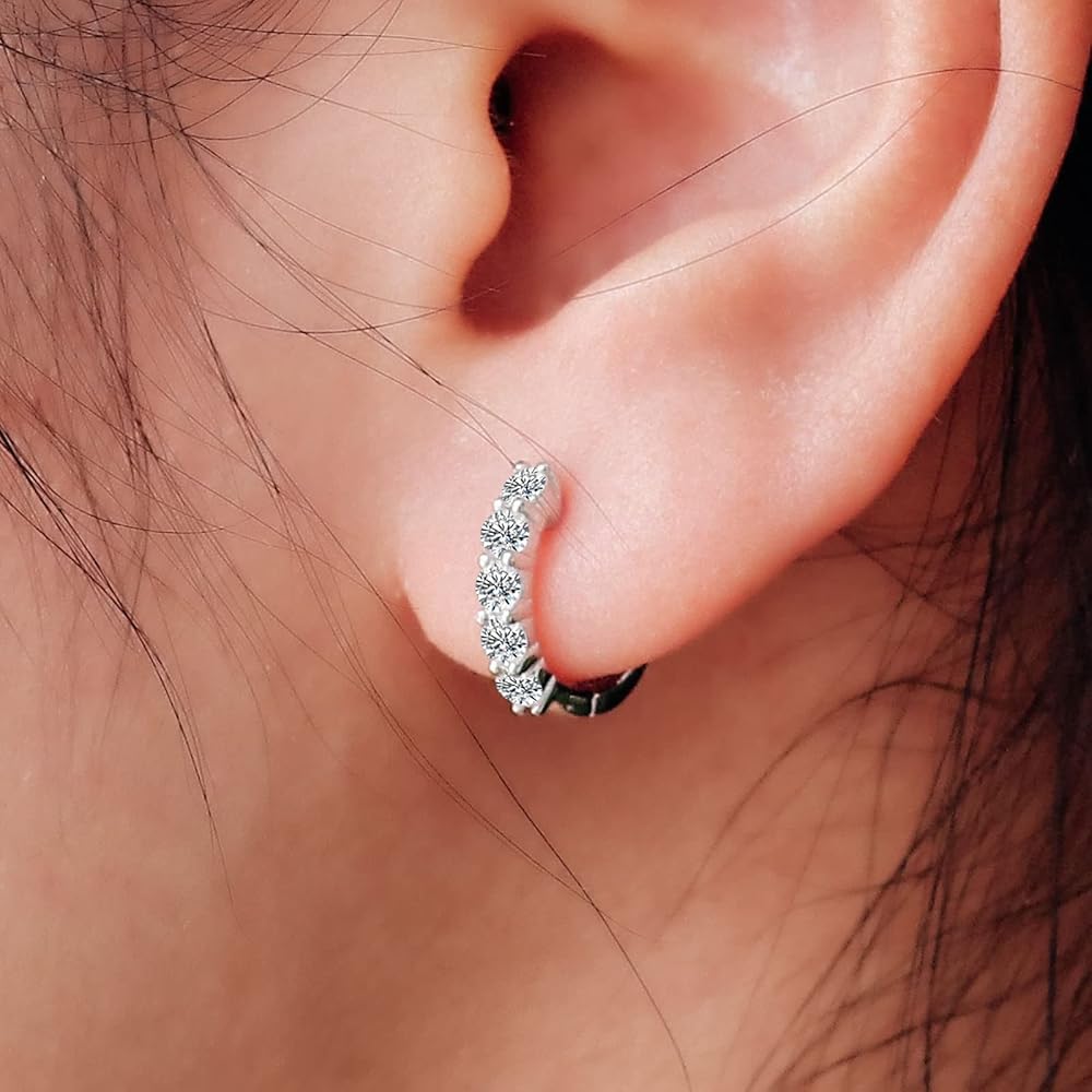 【Safe Materials and Exquisite Craft】:Metal of the earrings for women trendy is 925 Sterling Silver plated 18K white gold,Made with lead-free,nickel-free,and hypoallergenic materials,These earrings will not turn your skin green,red or itchy.our hoop earrings are crafted with care for quality and durability,Clasps of the cartilage earring are manually polished,Also,the stones feature hand made setting instead of wax setting,to ensure the stones won't fall out;Excellent polishing process will make
