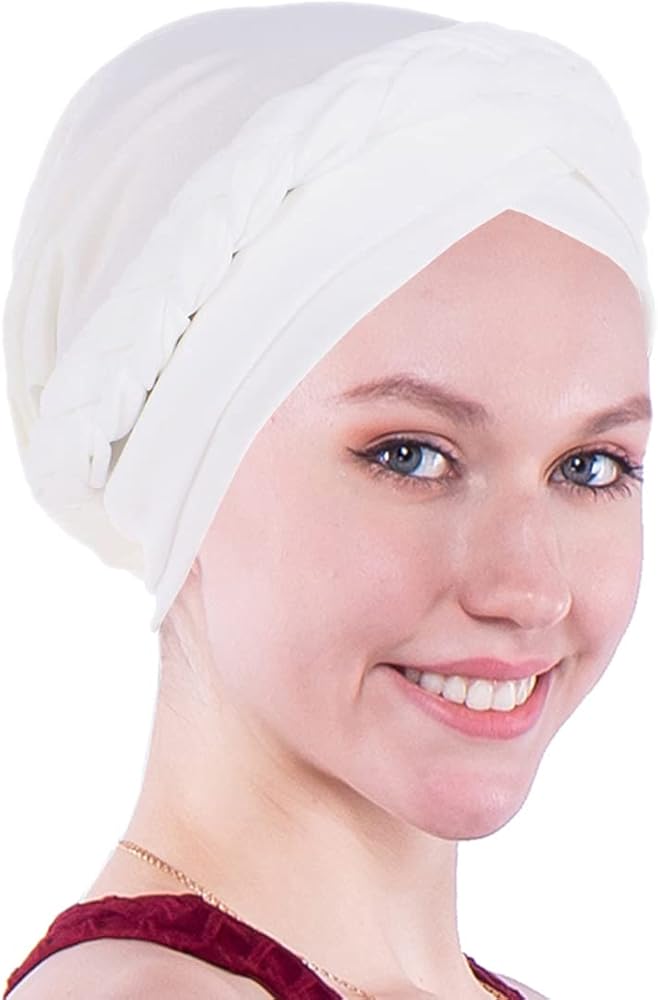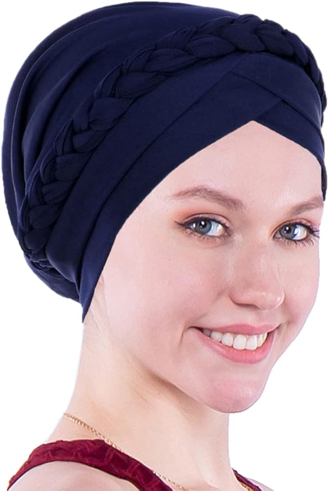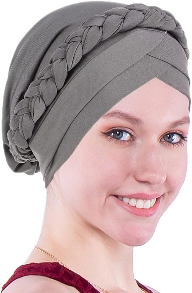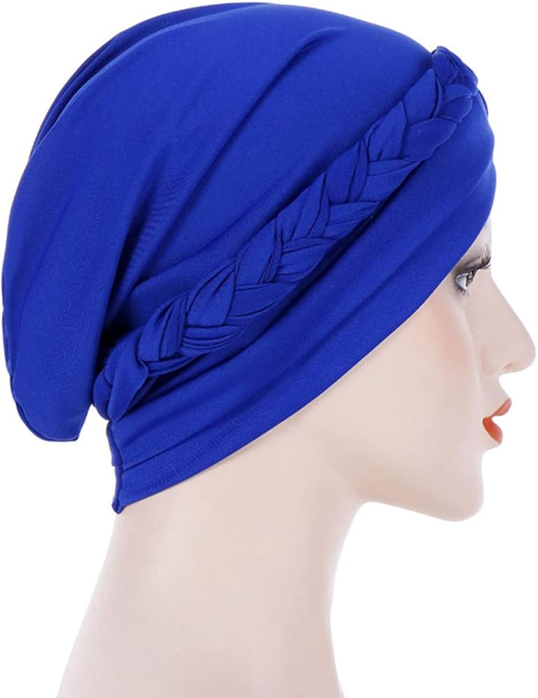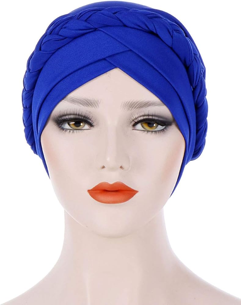 One size fits most.muslim hats for women.The Women Muslim Hats with braid cloth are fashion,elegant. Designed for women undergoing hair loss due to chemotherapy treatments, Alopecia or other medically related hair loss.The vintage women Polyester head scarf turban hat has good stretch.