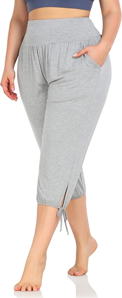 ZERDOCEAN Women's Plus Size Yoga Capri Pants Lounge Indoor Casual Comfy Relaxed Joggers with Pockets