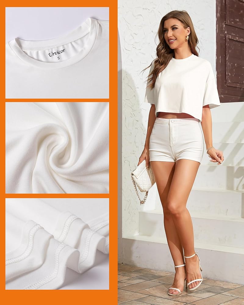 Fashion Matching: the crop tees great with leggings, jeans, denim jacket, boots, high waist shorts, Perfect to layer with a cardigan, blazer, jacket or knitwear when feeling a bit chilly.