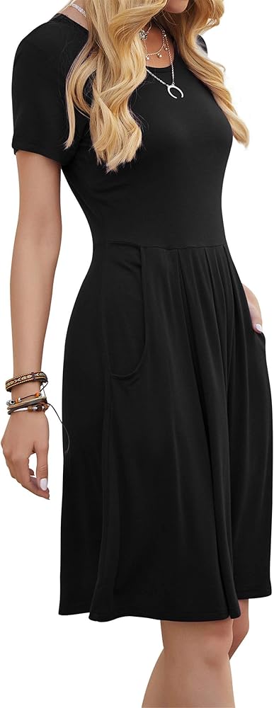 [FEATURES]: shorts sleeve summer dresses for women 2023, crew neck spring dresses for women 2023, solid color summer dresses, flower pattern casual dresses for women,dresses for women 2023 with pockets, pleated swing sun dresses women summer casual, knee length dresses for women party casual.
