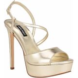 Complete your outfit in the Nine West Geez dress sandals. This sandal features a sky high stiletto heel, fashionable asymmetrical straps, and a modern open toe. Slip on these sandals for a night of dancing with your girls. The Geez sandals are the perfect wardrobe staple!