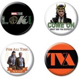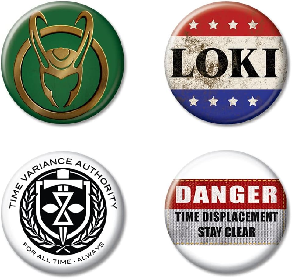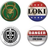 Includes four different Loki buttons as shown; each button measures 1.25" in diameter