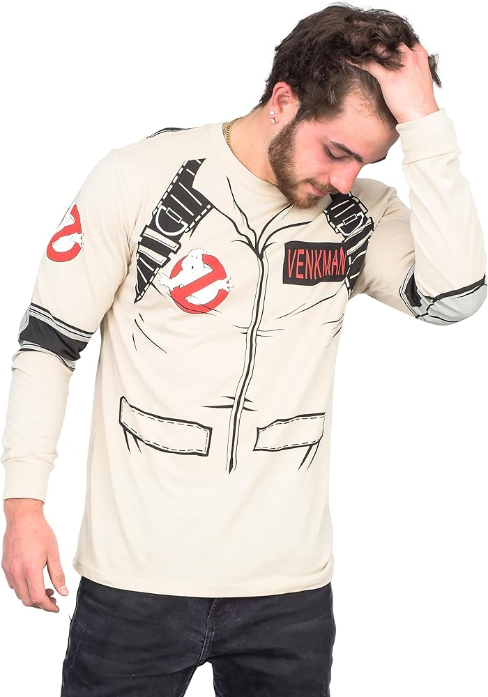 Long sleeve Ghostbusters costume tee is great for DIYers on a budget; great for Halloween; fun to wear to comic con or other cosplay events and celebrations