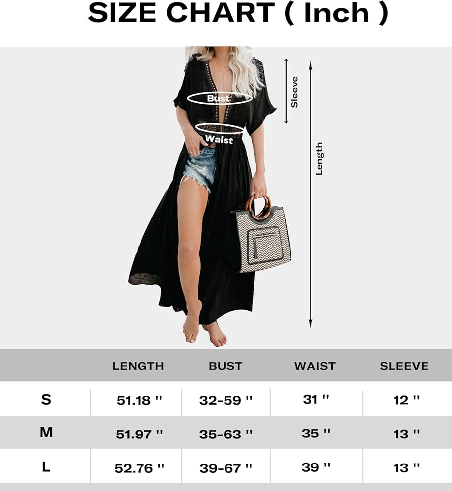 Material: Chiffon fabric. Sexy lightweight coverup swimsuit for women. Your must-have piece in this hot-summer.