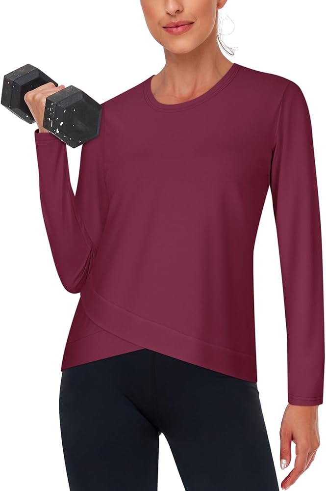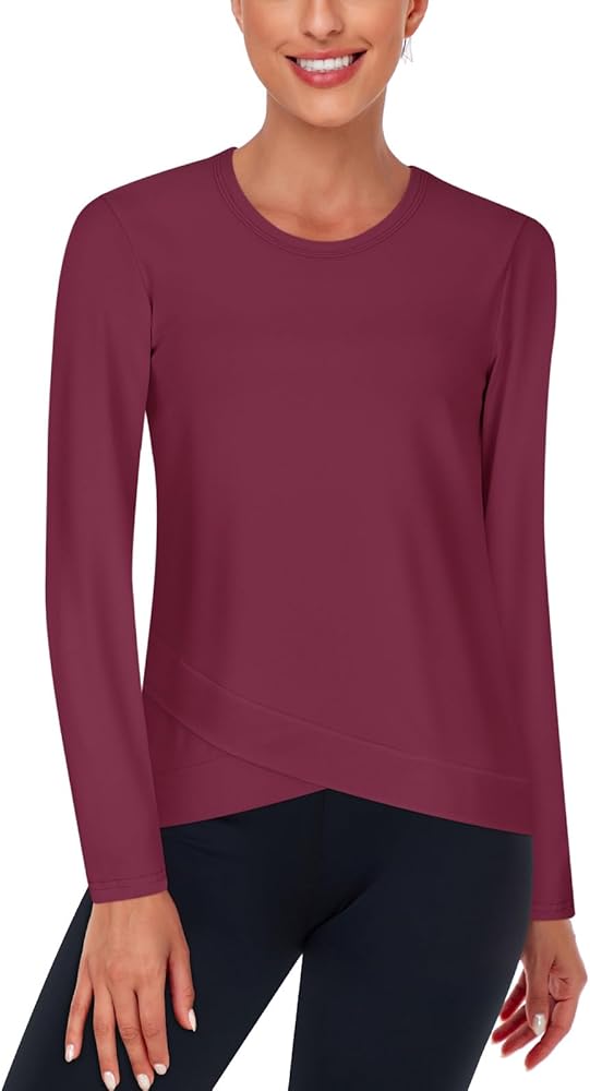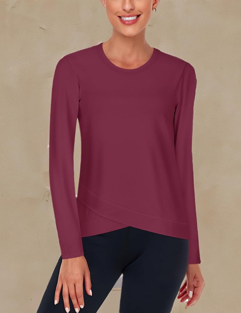 High quality fabric: This women's l;ong sleeve yoga shirts is made of high-quality sports fabric, soft and stretchy, quick drying, and breathable fabric to keep you dry and comfortable while exercising.
