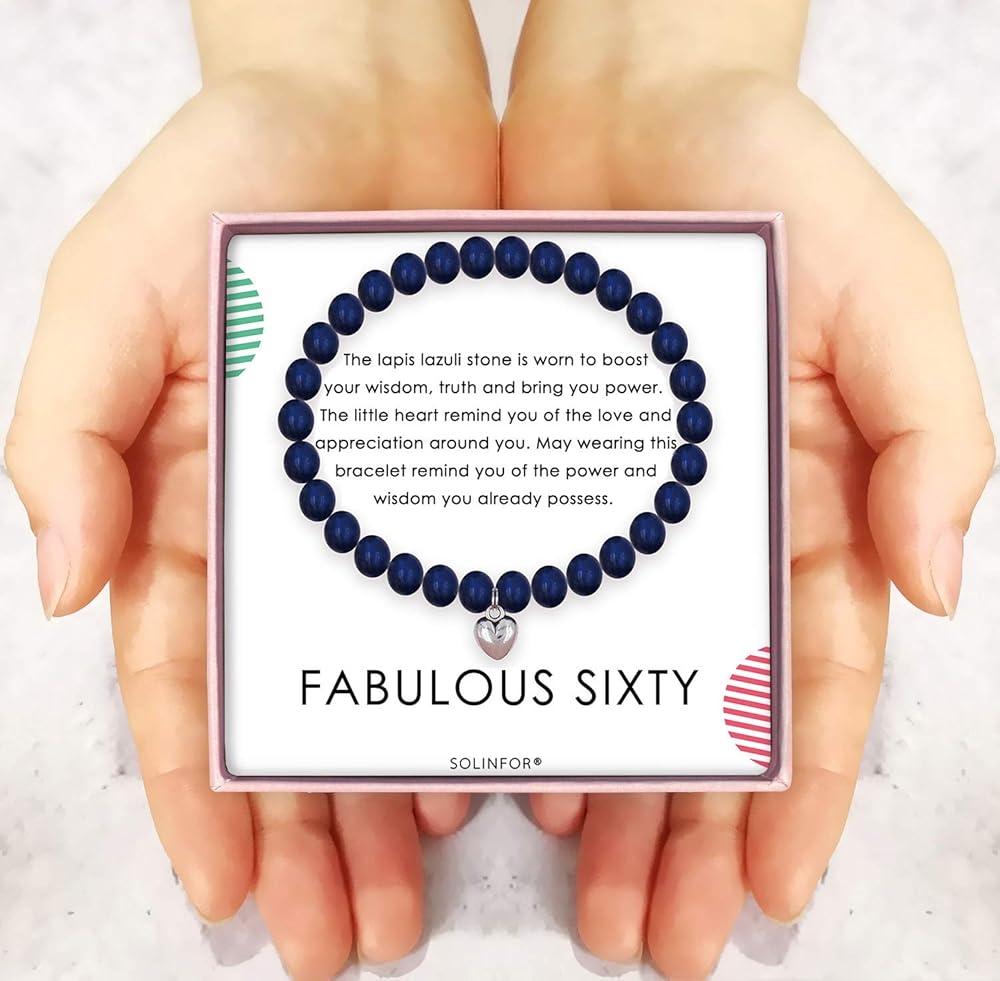 SOLINFOR 60th Birthday Gifts for Women - Lapis Lazuli Beads Bracelet - 60 Years Old Jewelry Gift Idea for Her