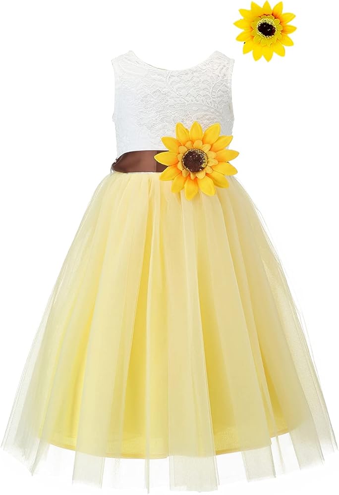 HIGH QUALITY MATERIAL: The vintage lace is soft and feels comfortable .The fabric is light and practical . GIRL LACE DRESS: Sleeveless full-length lace flower girl dress. are available, your girl can wear them on waist and on hair. SUITABLE FOR MANY OCCASSIONS: party, wedding, banquet, church, school, formal and business casual etc. Beautiful and elegant everywhere! receive many compliments!