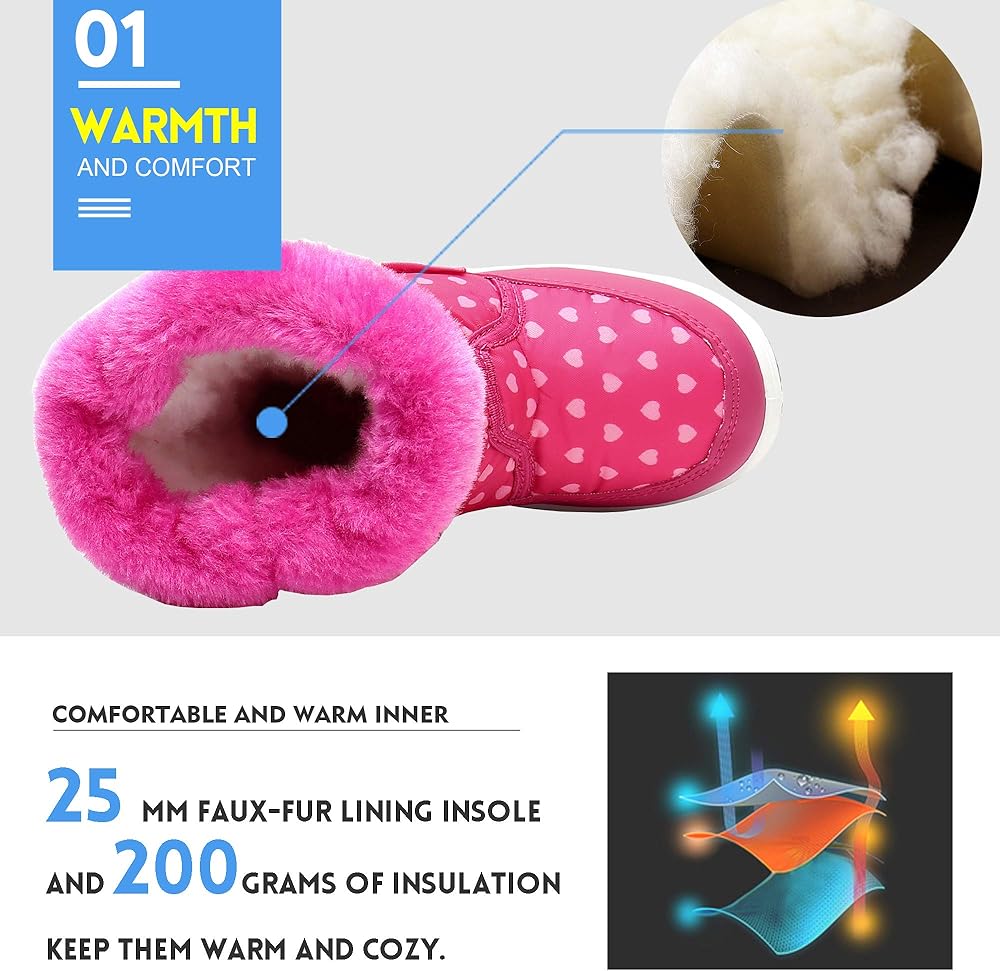 【SUPER CUTE】Mid-calf snow boot is crafted in a comfortable polyurethane nylon upper and featuring an adorable heart print.These shoes will give her outfits an added pop of pizzazz.