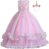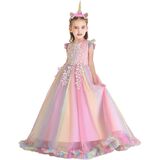 Unicorn Style, Sleeveless or Ruffle Sleeves, O-neck, Exquisite Appliques 3D Flowers & Faux Rhinestone & Beads or Sequins Decor, Hidden Back Zipper Closure (Buttons), Ruffled Peplum Skirt & Tulle Skirt, Floor Length, etc.