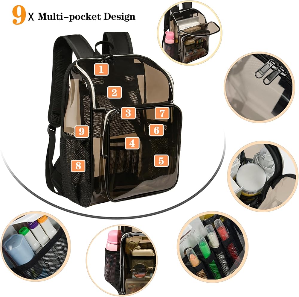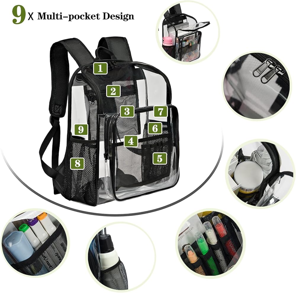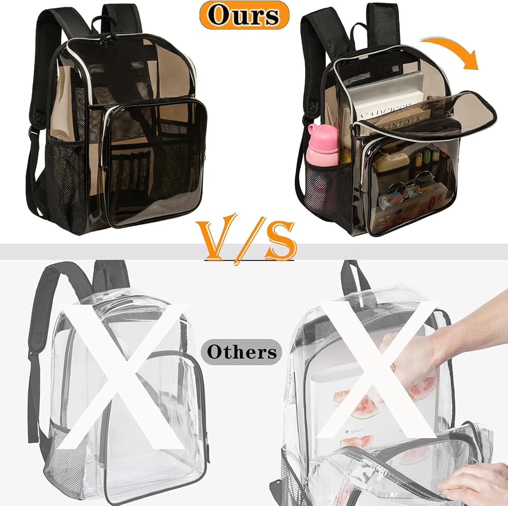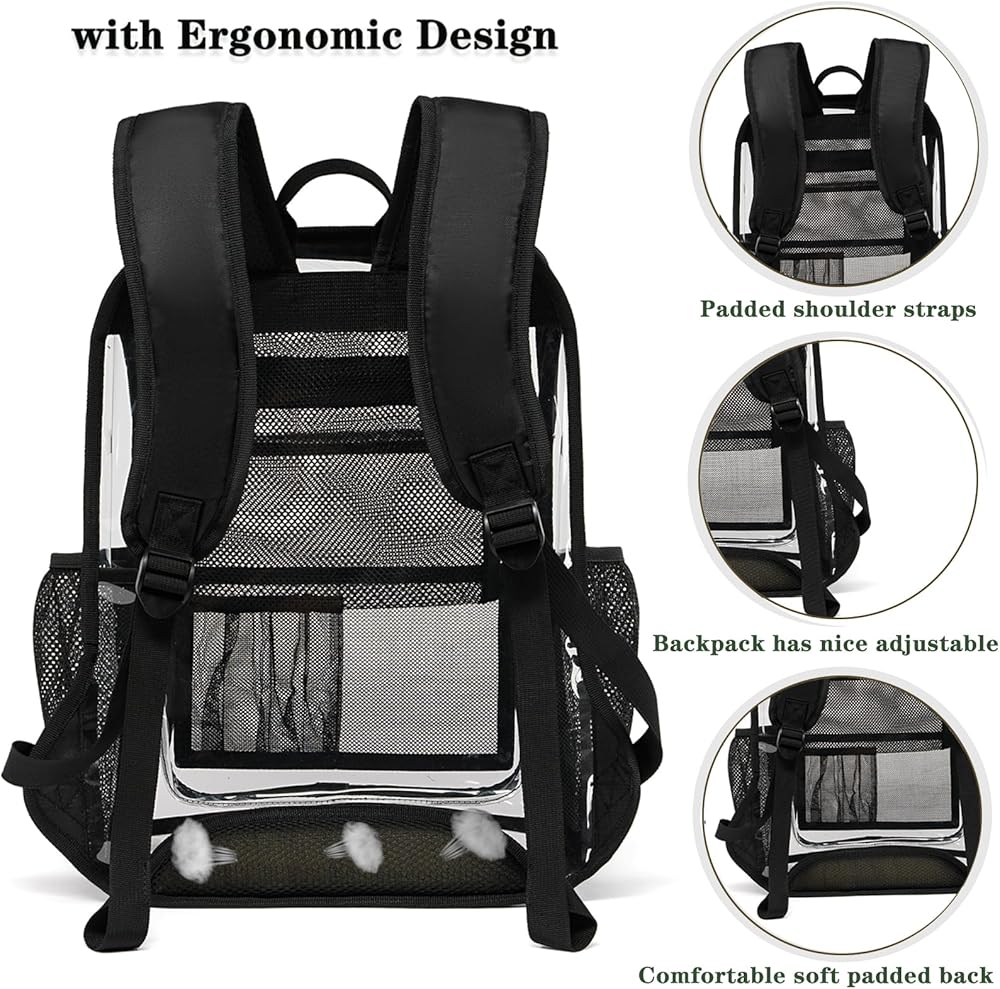 EASY CARRY -- The clear bag is your best choice for colleges and workplaces that require security checks. Plastic backpack is a perfect choice for universitys, music festivals, travel, sports events, outdoor sports,and concerts. This clear backpack heavy duty still an ideal gift for all students, adult men women