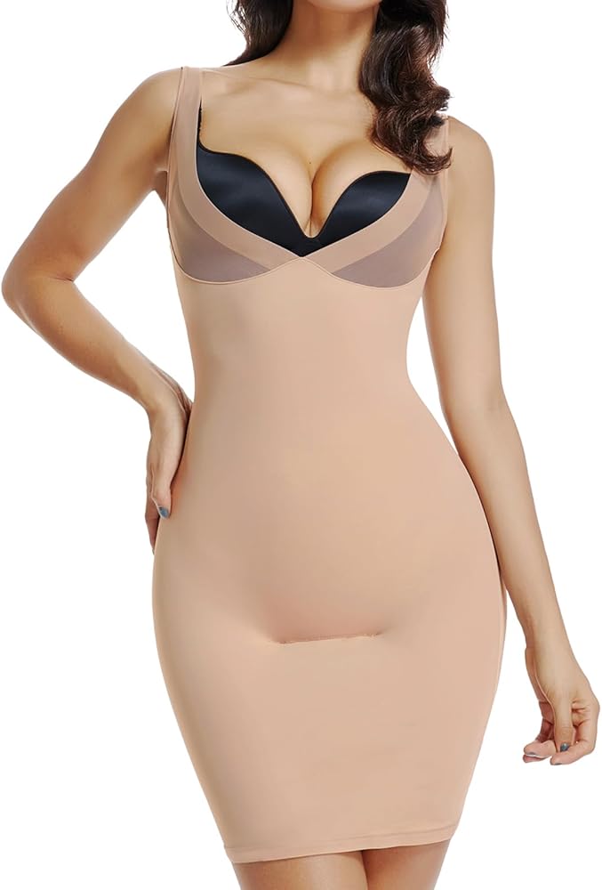 ✅Full slip shapewear dress --Long full slips for under dresses flatters your whole body and stays in place, this full body shaping control slip goes great under any dress while shaping your torso and hips.
