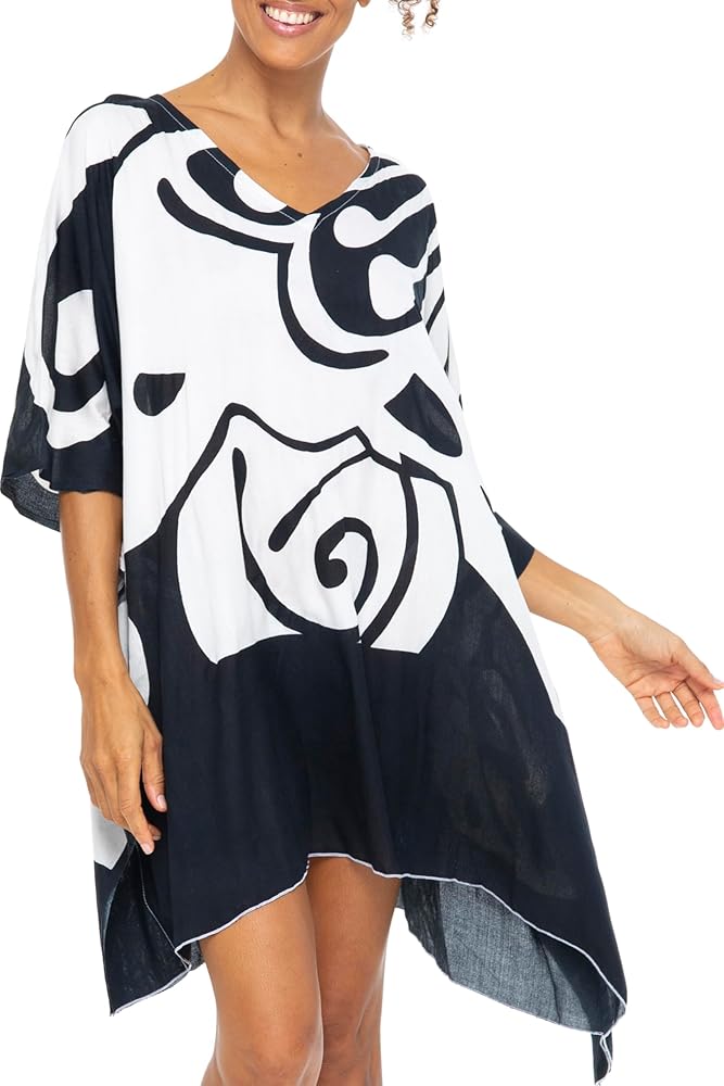 Versatile design works as a swim cover up, a tunic top or a fun summer caftan dress with sandals or heels
