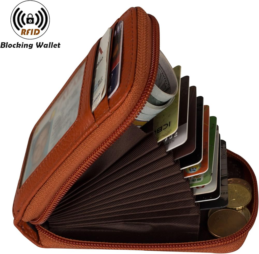 Material: 100% Cowhide Genuine Leather, Zip-Around Closure, Soft and Durable