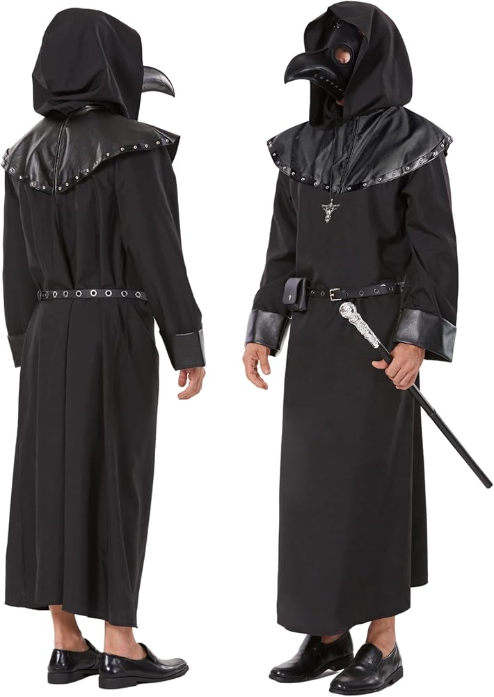 【Size Info】Our well-made Plague Doctor Robe is xx inches long and fits most adult. The adjustable leather belt and mask make you free from the trouble of being unable to wear them.