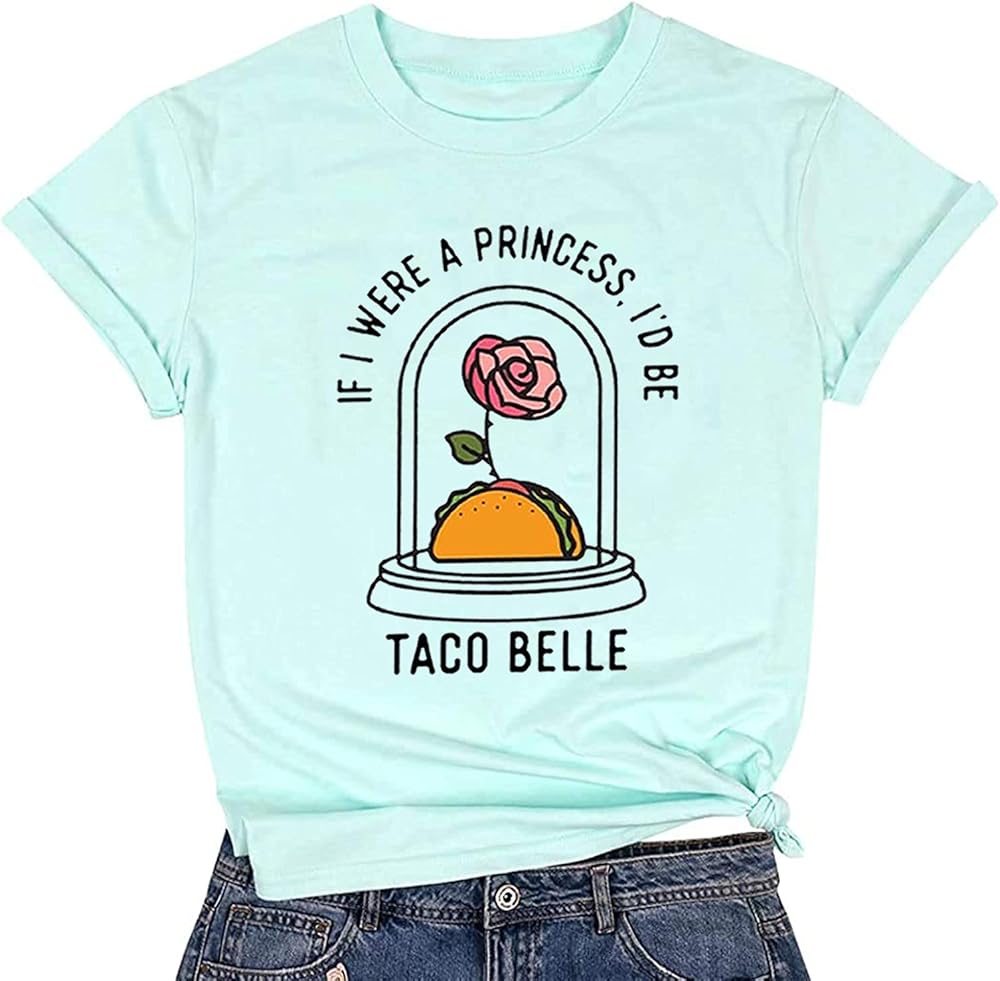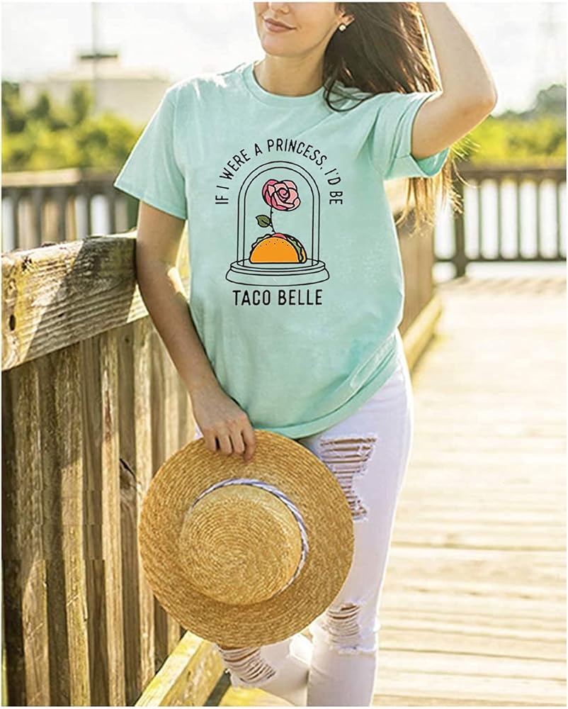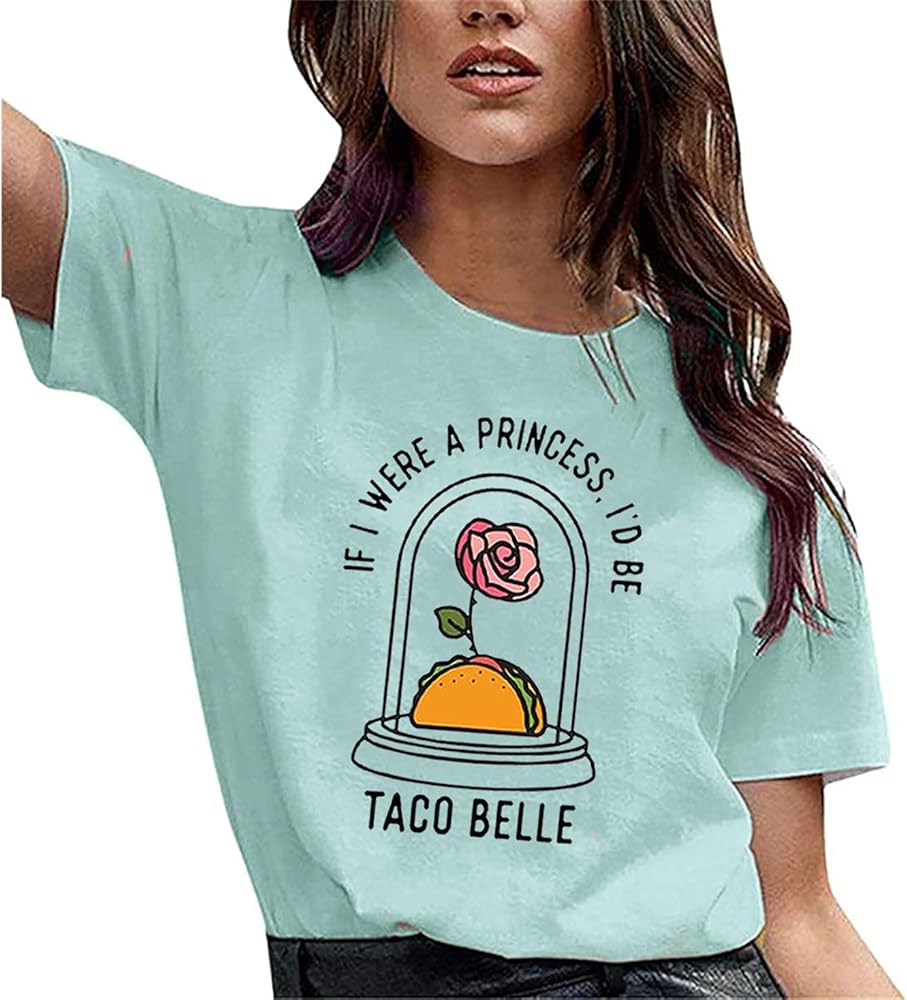 Women's Funny Letter Print Novelty Shirt Cute Taco Graphic Tee Shirt Short Sleeve Casual Summer Tops