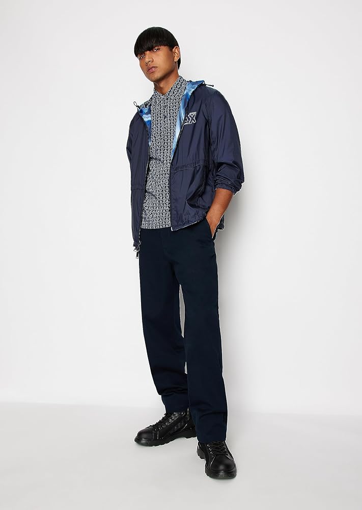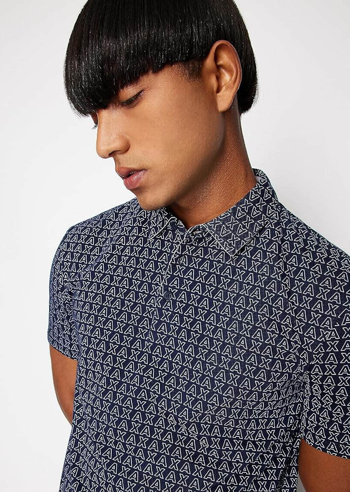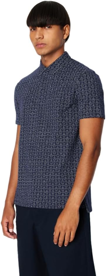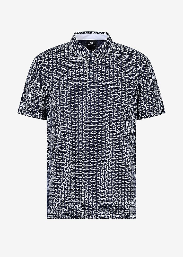 A|X Armani Exchange Men's regular fit, collared polo shirt with short sleeves. All-over print in repeating logo or small circles.