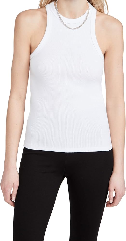 A summer staple, this ANINE BING Eva tank is designed with a high neckline and severe racerback silhouette. Tuck it into easy trousers or denim for a sophisticated off-duty look.