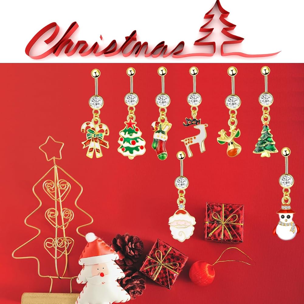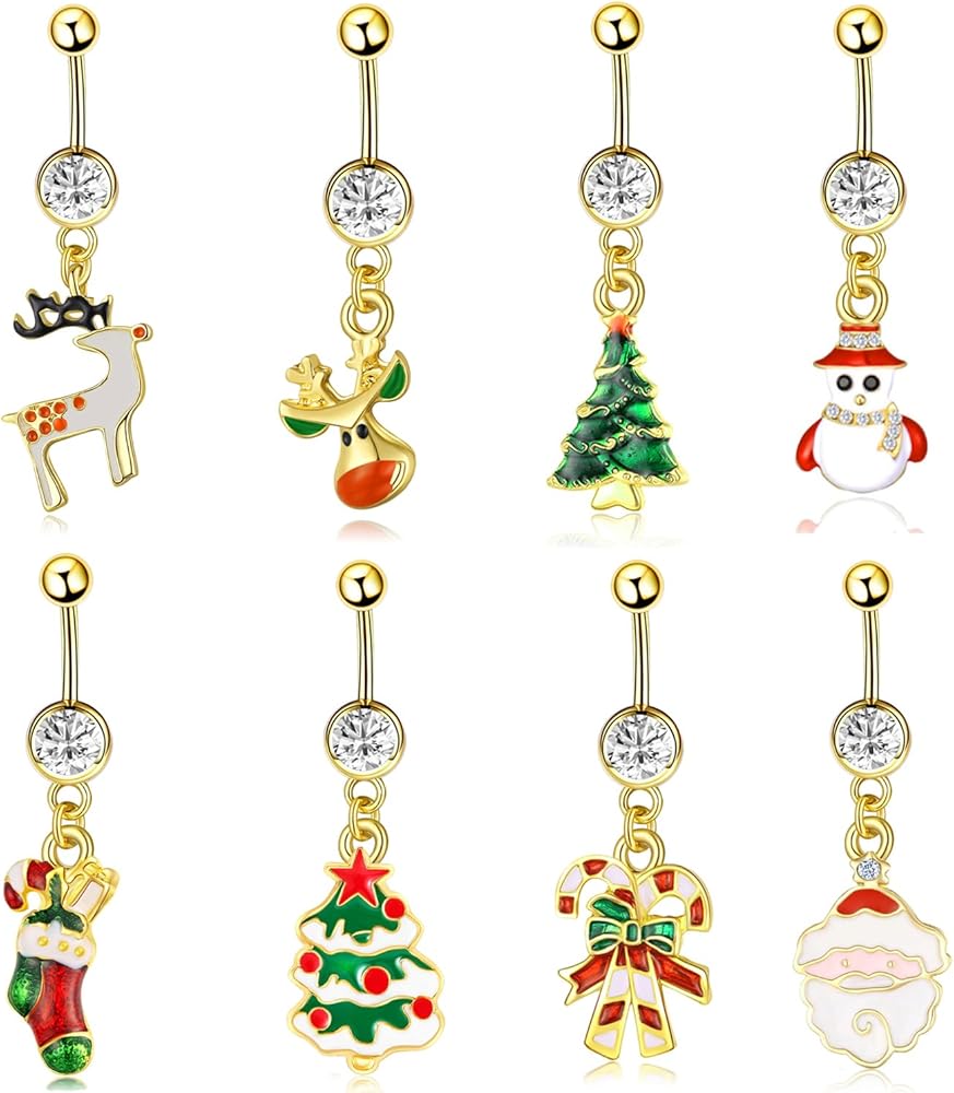 8pcs delicate and faminite design Christmas Dangle Belly Button Rings are perfect for special occasion. They add a certain elegant yet alluring element to christmas outfit and a better choice of jewelry for party.
