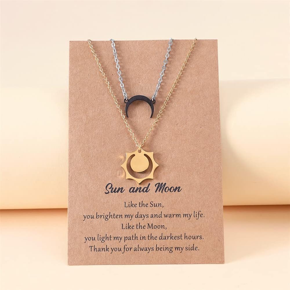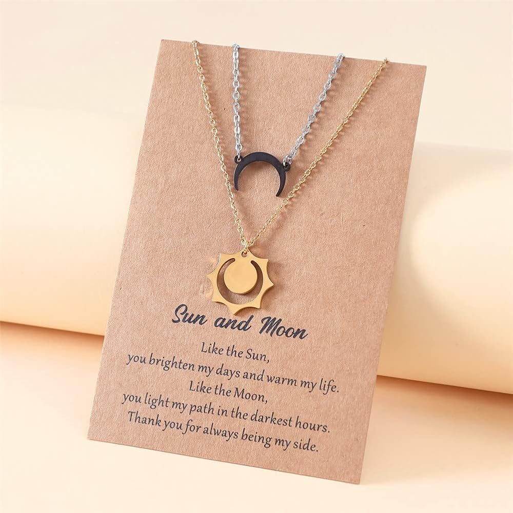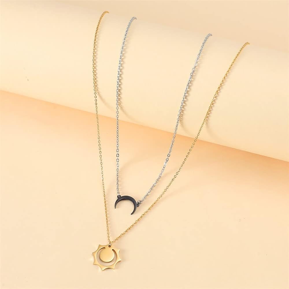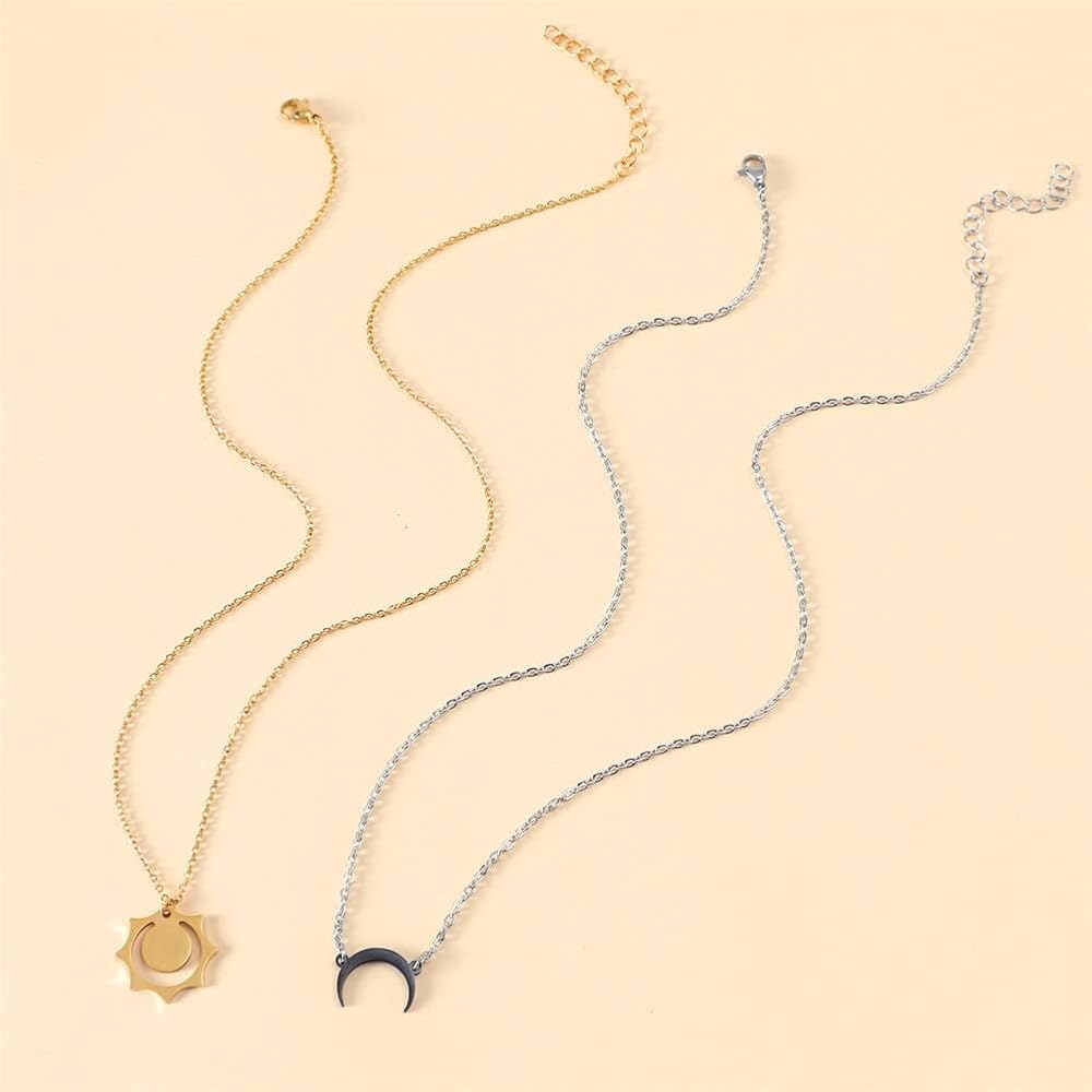 2Pcs matching sun and moon necklace, geometric hollow sun pendant necklace, double bull horn necklace, crescent moon necklace, moon sun couple necklace for 2, bff necklace, friendship necklace, full of charm.