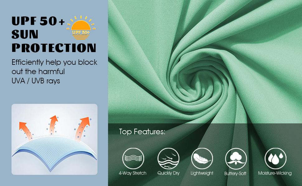 UPF 50+ Sun Protection ► Long sleeve workout tops for women certified UPF 50+ help you block out the harmful UVA / UVB rays in the sun. These UV protection clothing provide persistent and efficient protection of your skin. Enjoying your outdoor sports freely in summer.