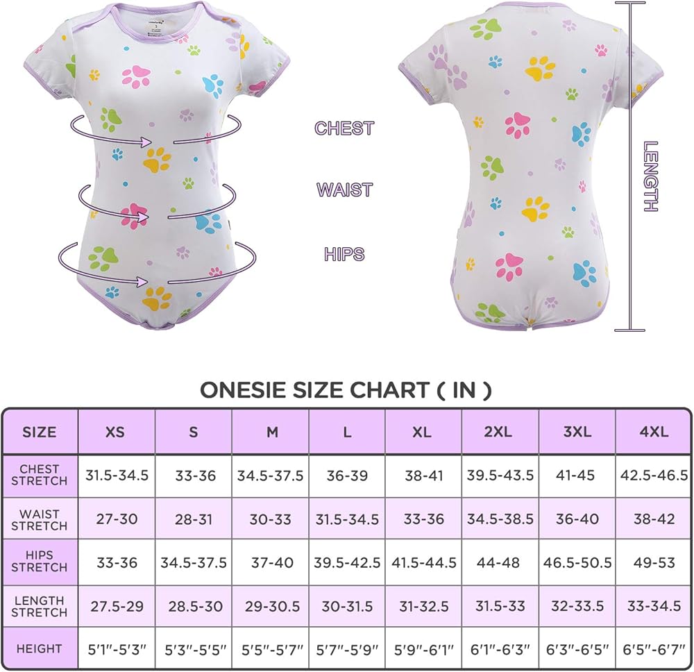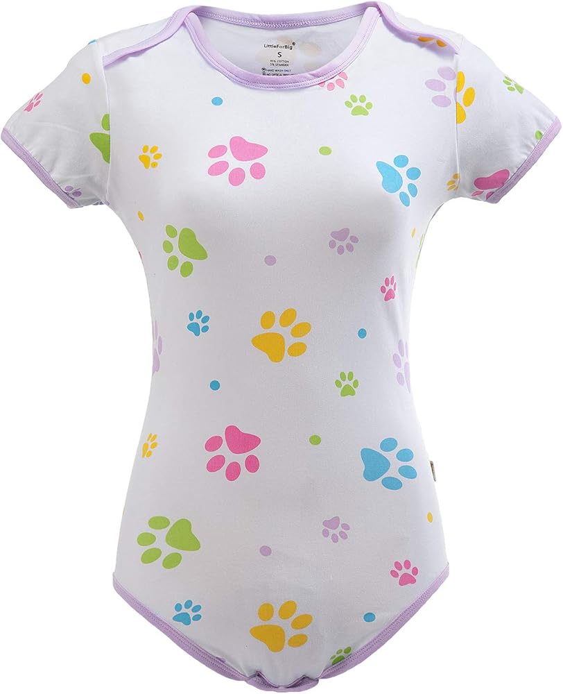 - Vibrantly colored prints similar to those found on real baby onesies have been enlarged to provide the same level of cuteness to adults.