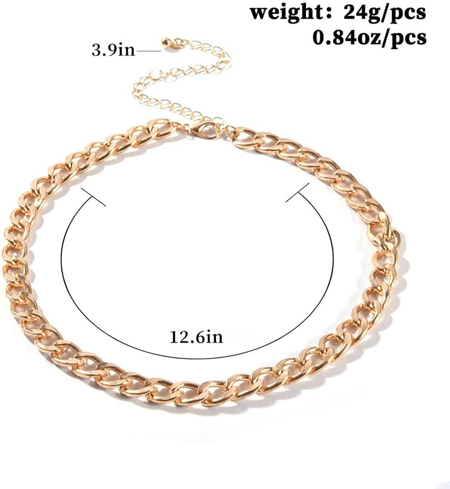 Gold chain necklace size:, thick Cuban chain necklace with the length in 12.6in+3.9in.this gold chain choker is the perfect piece of jewelry for any man or women.timeless and luxurious this curb chain necklace is a piece for everyday wear and for basically any outfit.