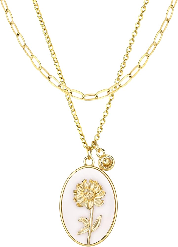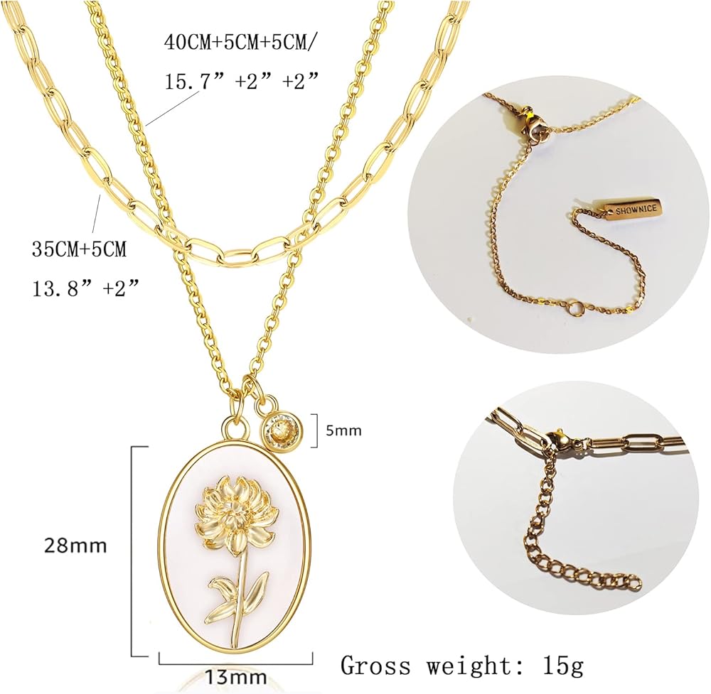 【Material】Made of durable 316L stainless steel with excellent polishing craftsmanship, which will make it look gorgeous and sparkling. Our birth flower necklaces are nickel free, lead free & cadmium free, safety for sensitive skin and will not break, abrade, tarnish or fade.