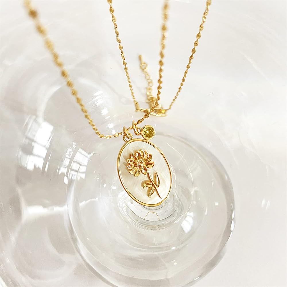 【Pendant】Cute Oval style Pendant with Stereoscopic Birth Flower flora embossed, very delicate and classic pendant for women girls. This kind of minimalist coin necklace is a hit, Inlaid white shell in fashion and all match with your daily outfit. With meaningful flower hidden message, the disc necklace will deliver your love and blessing.