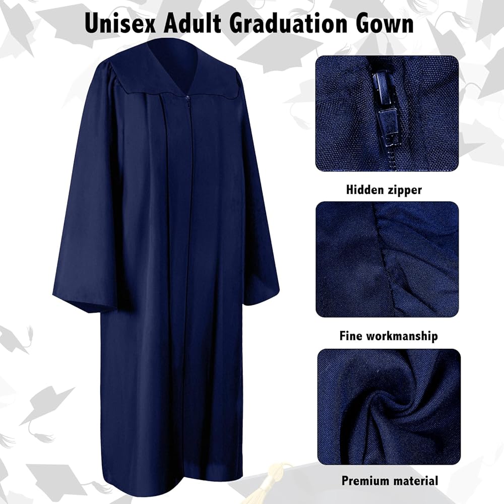 SIZE DETAIL - Unisex gown 5 sizes loose fit for height 5.21ft-6.36ft women and men, the other graduations accessories are the same size suit for adult and teens, please check the detail size on the picture shows before purchasing.