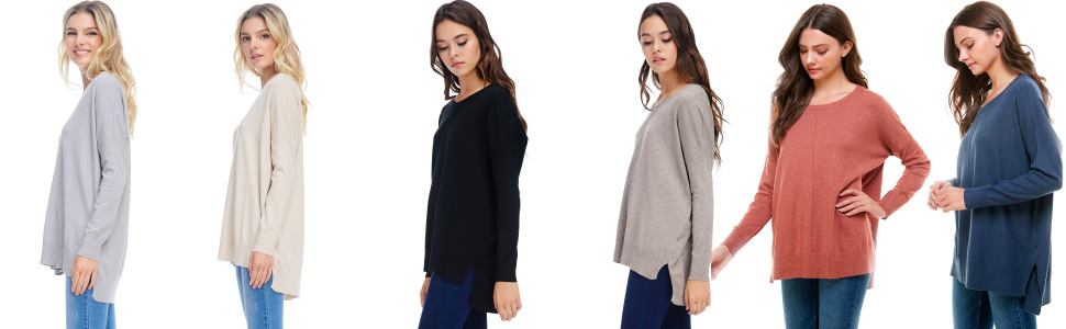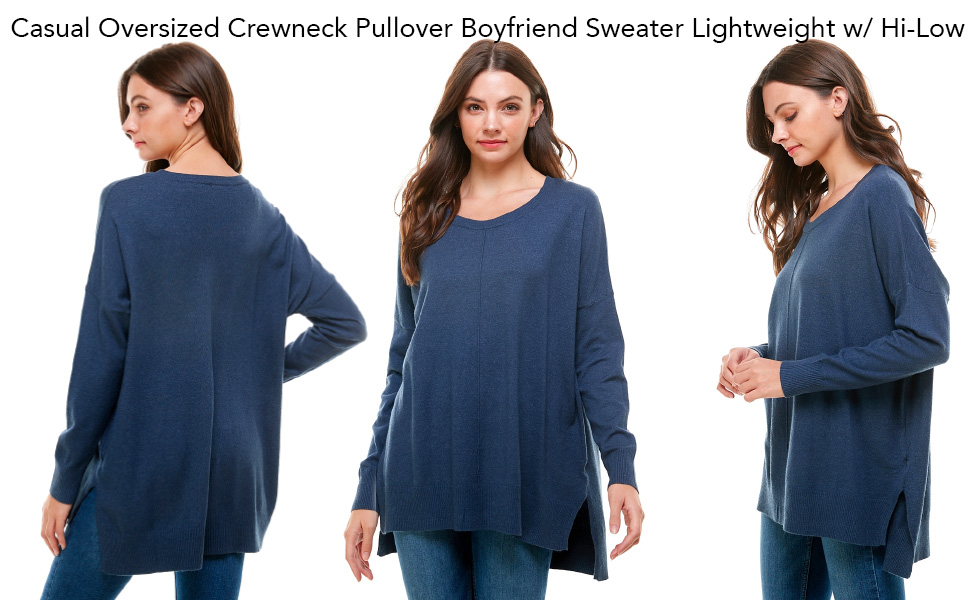 OVERSIZED BOYFRIEND FIT SWEATER: This is not your boyfriend's sweater, but he's gonna wish he had this soft sweater! The oversized boyfriend silhouette hides any kind of midsection flaws. With the large size there is a lot of flowing fabric that allows to look slim and somfortable. The fabric is also very forgiving with a hi low hemline that also hides the backside, which makes this optimal for leggings or shorts as well!