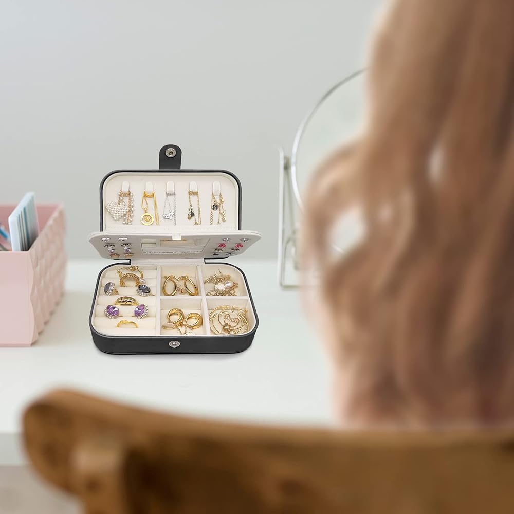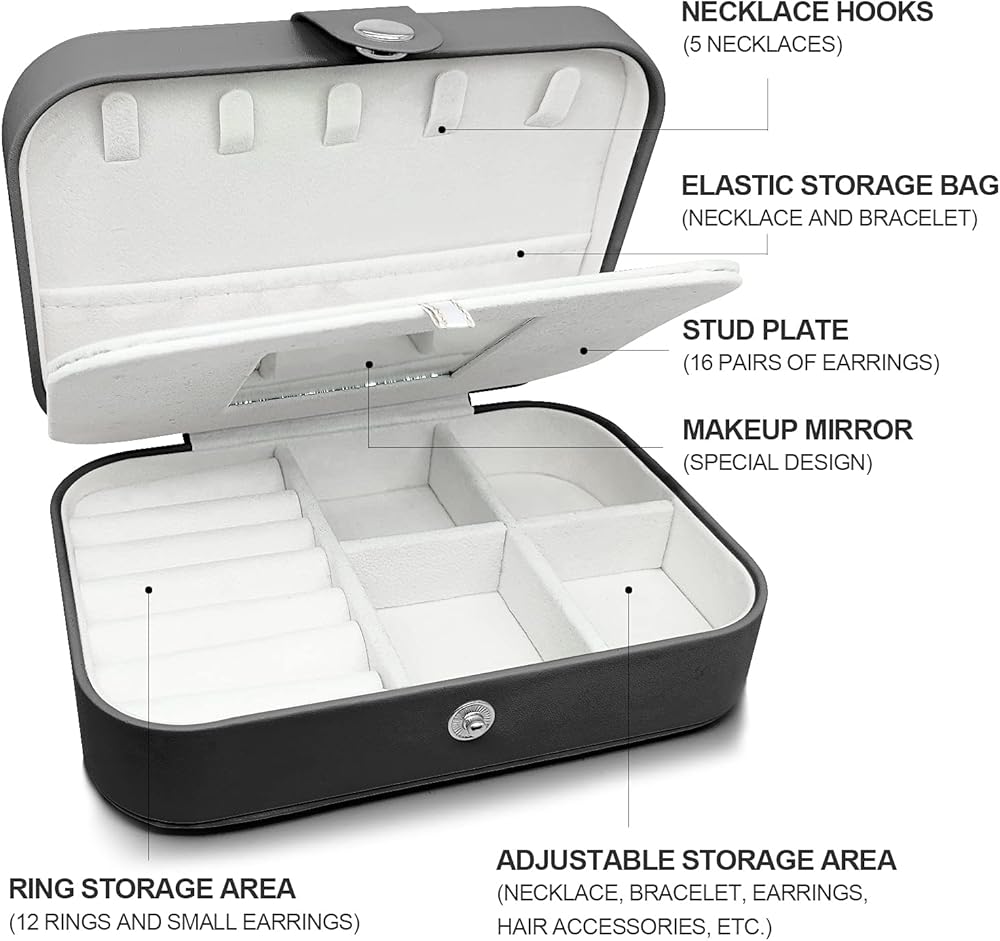 Economical Design - This small but large capacity case with double layer, provides stud plate, necklace hooks, ring groove and adjustable storage space, can be held most of your jewelry