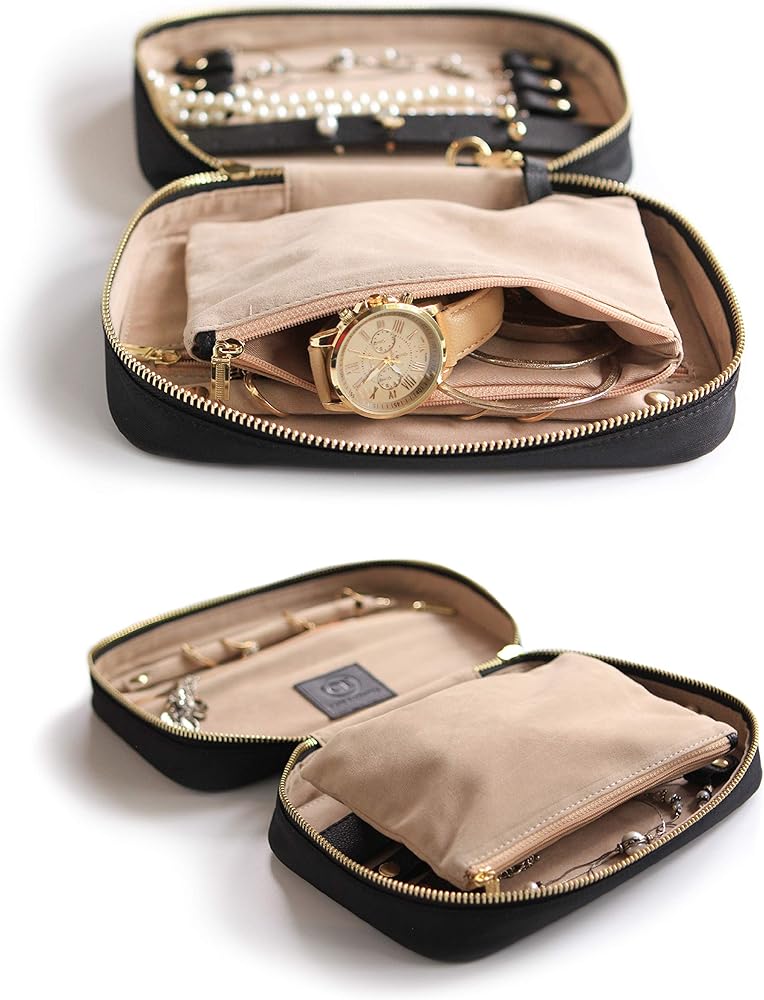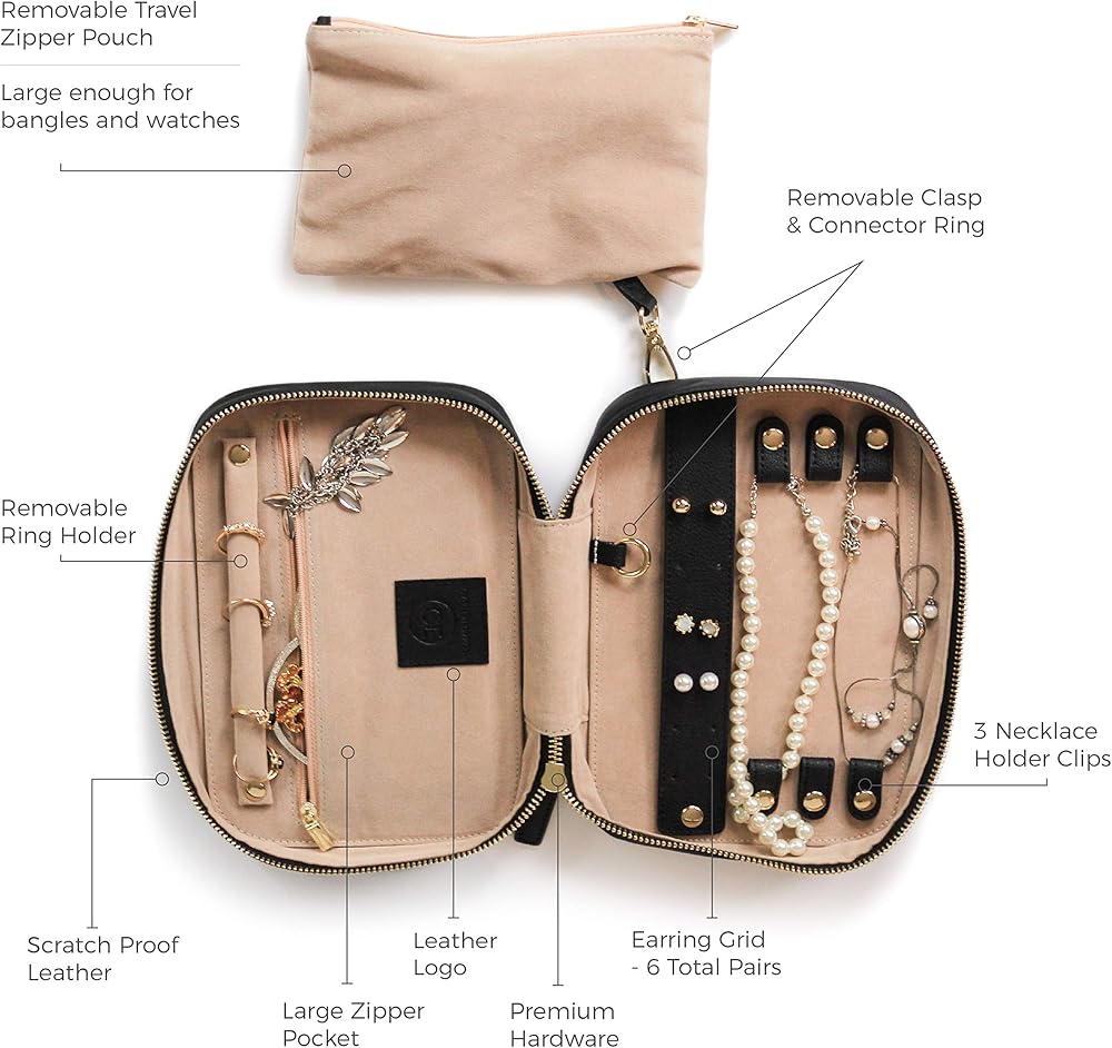 TO-GO POUCH - No more worrying about not having your essentials while on the go. We've included a removable clip-out zipper pouch that can fit into smaller purses and bags. Go ahead and pack the extras in this travel jewelry organizer case.