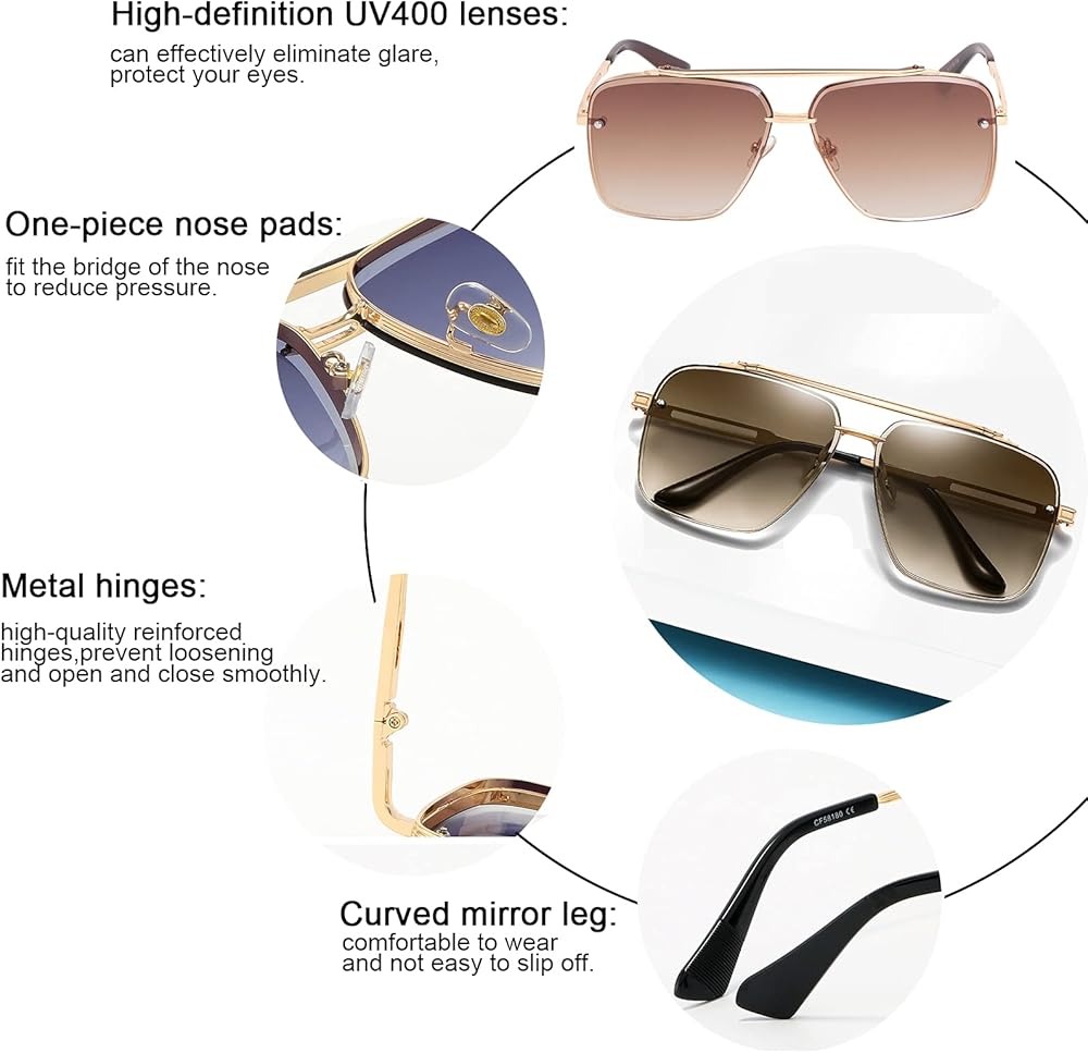 Vintage square aviator sunglasses fashion men are made of high-quality resin material, UV400 protection lenses, solid metal hinges, all the details ensuring you a long time using. suitable for any climate and weather conditions.