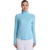 The Arabella Golf Quarter-Zip features the beautiful, light jacquard knit diamond texture of our Active Diamond fabric. The soft detailing of the stitching amplifies the flattering ruching on the shoulders and along the zipper of this fitness quarter-zip. The UPF 50+ coverage extends even further with the stand-up collar and unique hem that curves perfectly along the top of the hand.