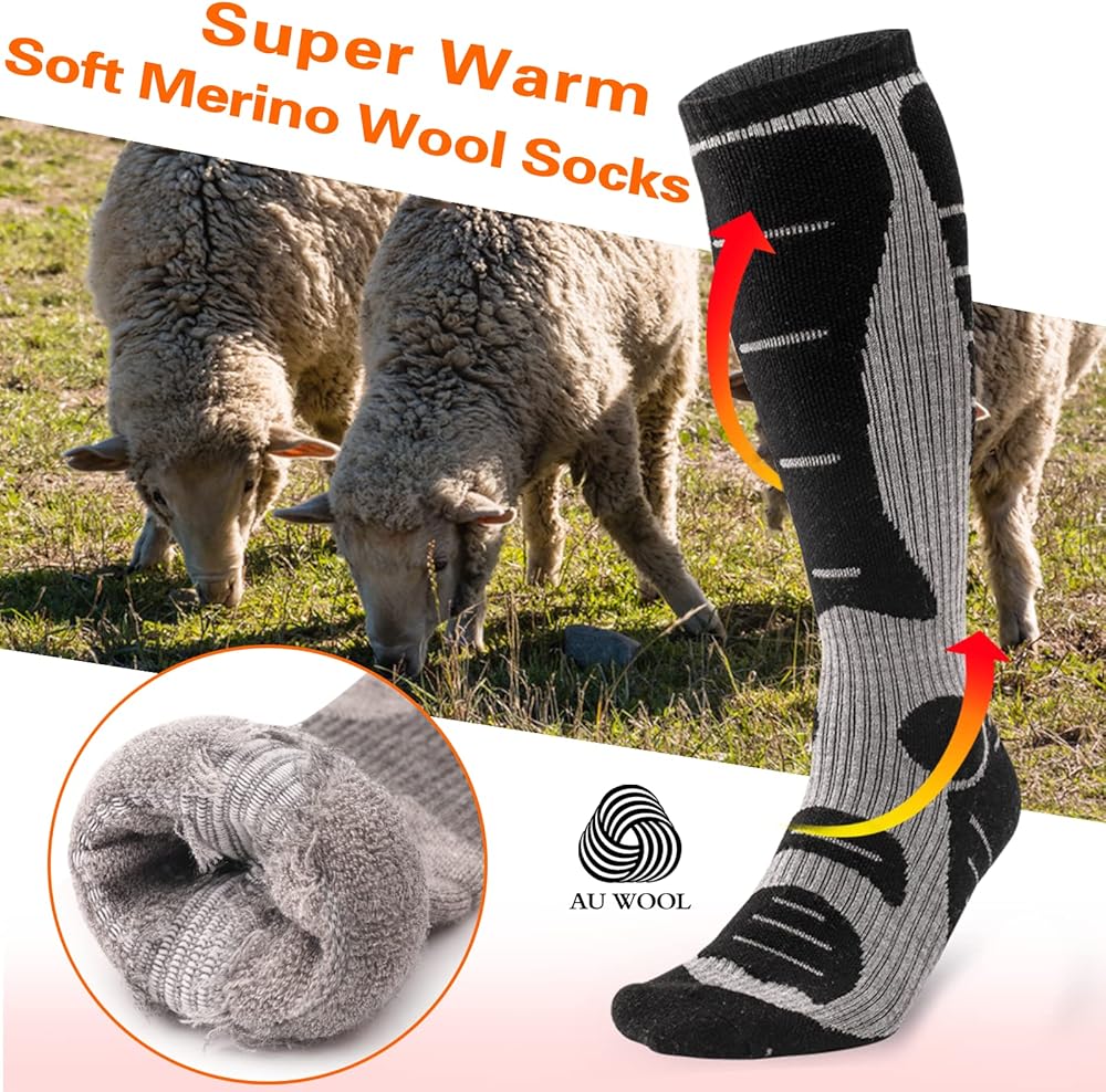 Perfect Winter Athletic Socks: Made from premium merino wool which has great insulation performance and absorbency of moisture. Keeps your feet warm in cold days and wicks sweat away from your skin. Suits for various outdoor winter activities, like skiing, hiking, ice fishing etc.