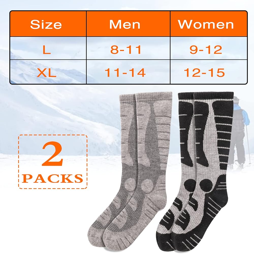 Package Included: 2 pairs of Merino Wool Ski Socks. Unisex fit.