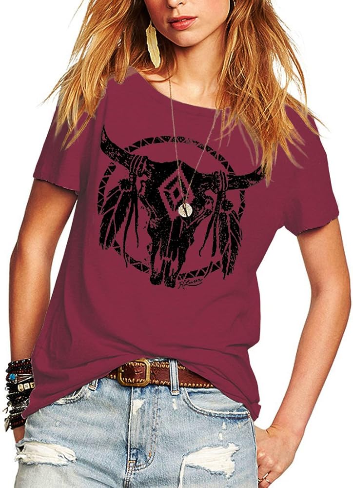 Romastory Womens Street Pattern Novelty T-Shirt Short Sleeve Loose Summer Tops Tee Shirts
